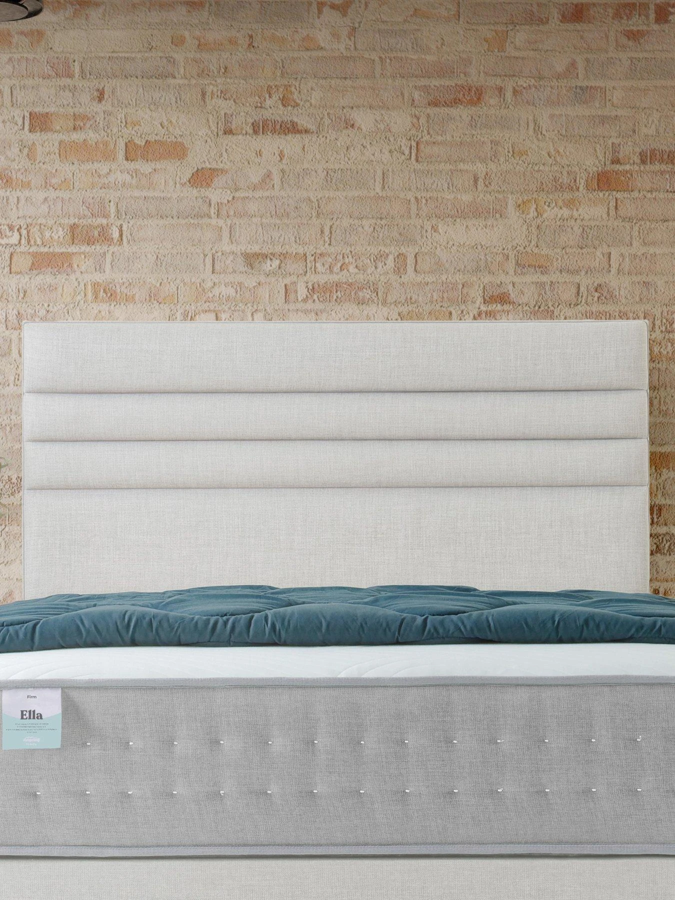 Designed for a sleek style and offering comfort while you read or sit in bed this horizontally themed model is upholstered in a comfy, tactile fabric, and available in 3 always-popular fabric colours: Light grey, Dark grey & Natural. It’s the perfect partner to our matching divan bases available from the Aria, Lila & Ella ranges, or with its universal fittings will fit almost any divan, whether new or existing.