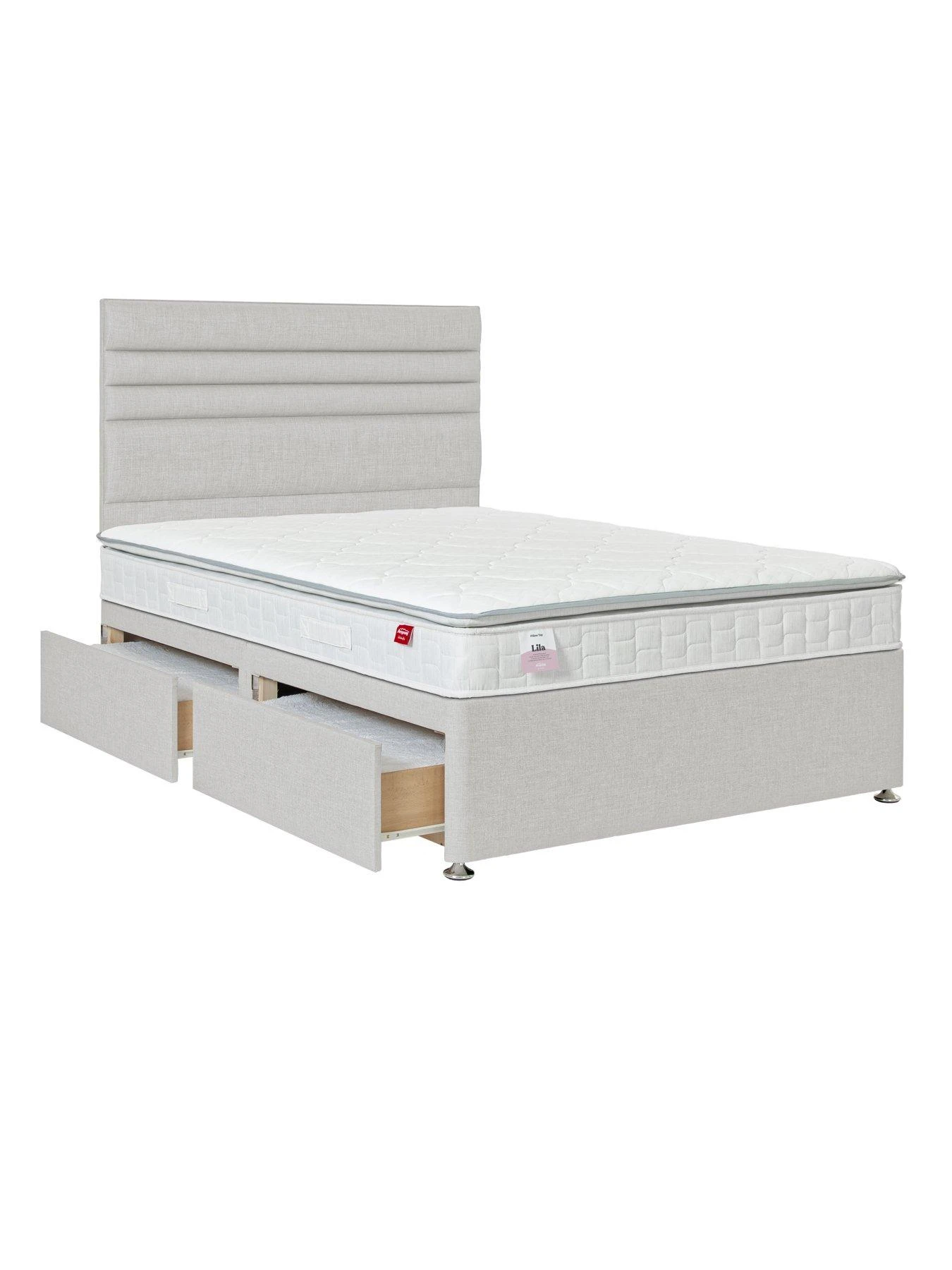 A perfect pairing of a smart and practical divan, together with the Lila Pillow Top medium/firm support mattress. Matched to be a well-priced, 2-part set.