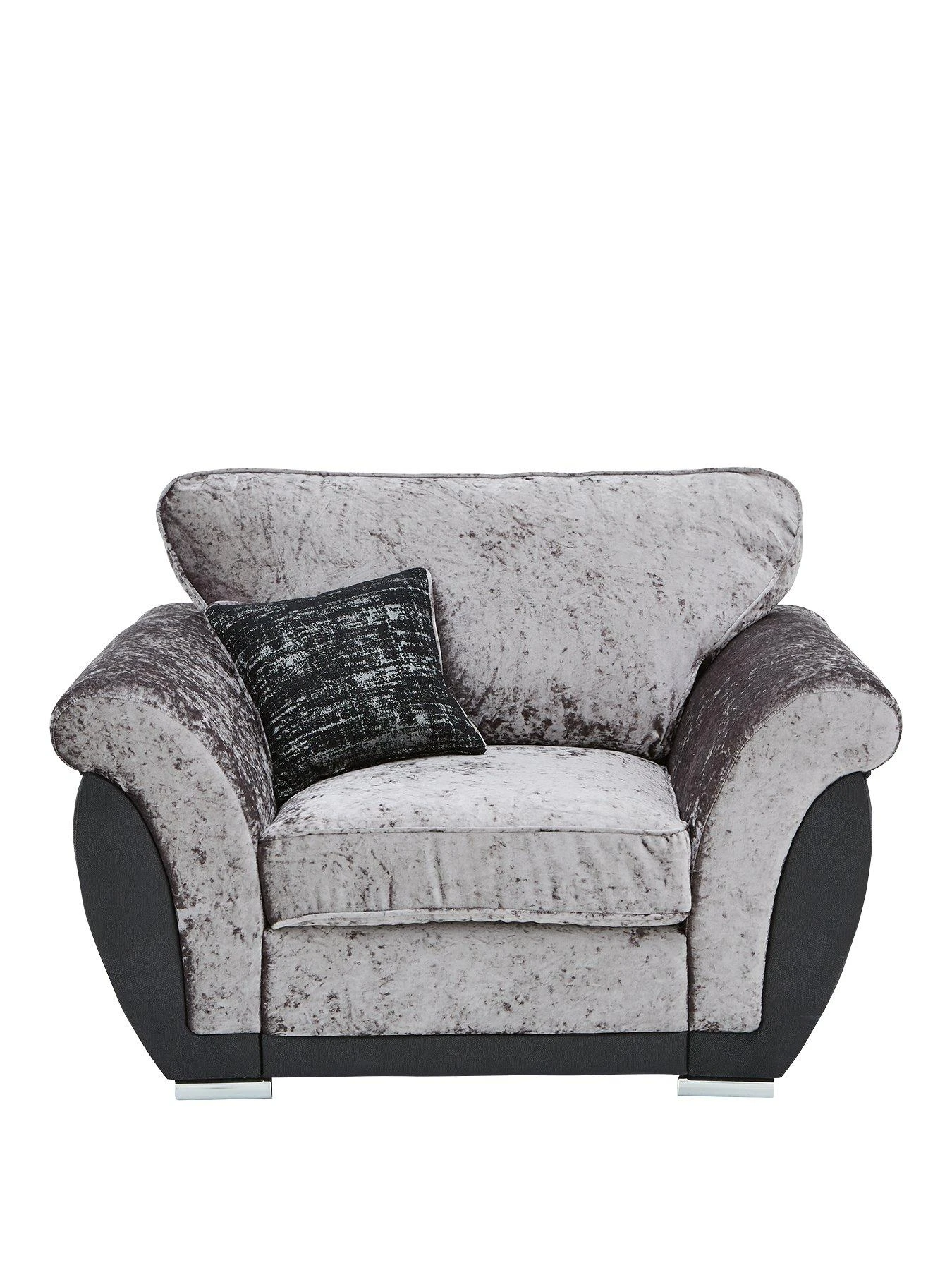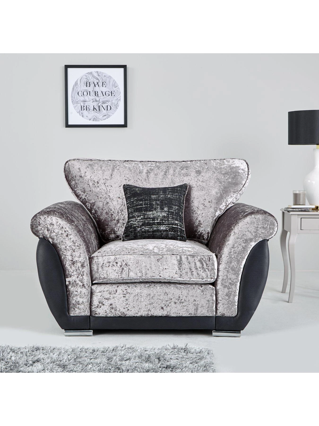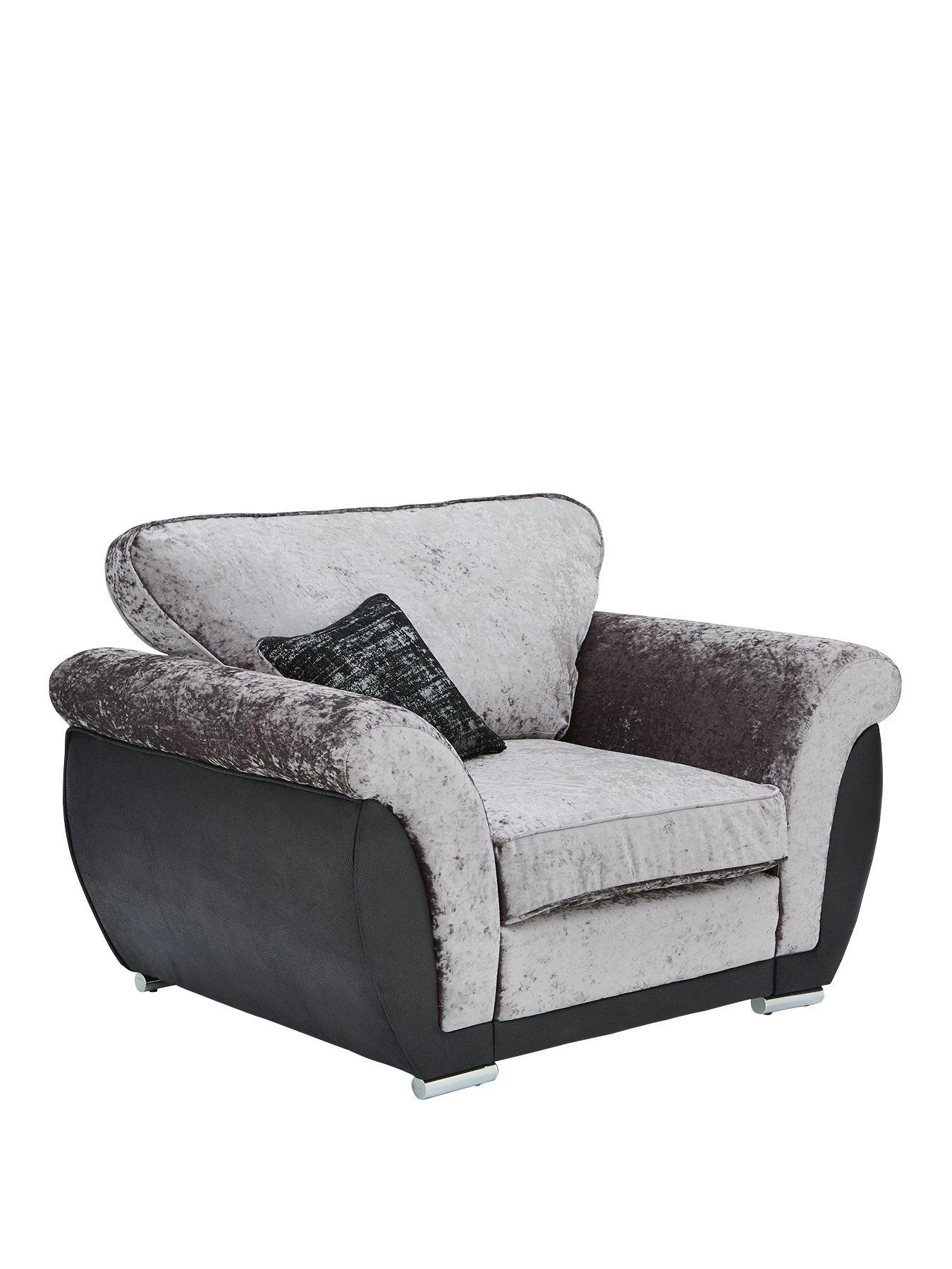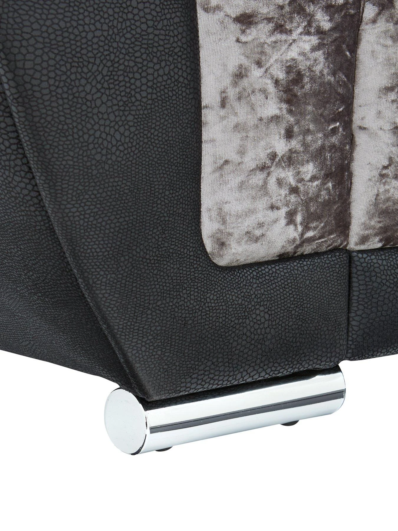 Curvy arms are highlighted by the different fabrics, and the accent cushion is upholstered in the velvet to one side and the metallic pattern to the other – give it a flip whenever you feel like a different look. Added glitz comes from the contemporary chrome-effect feet.