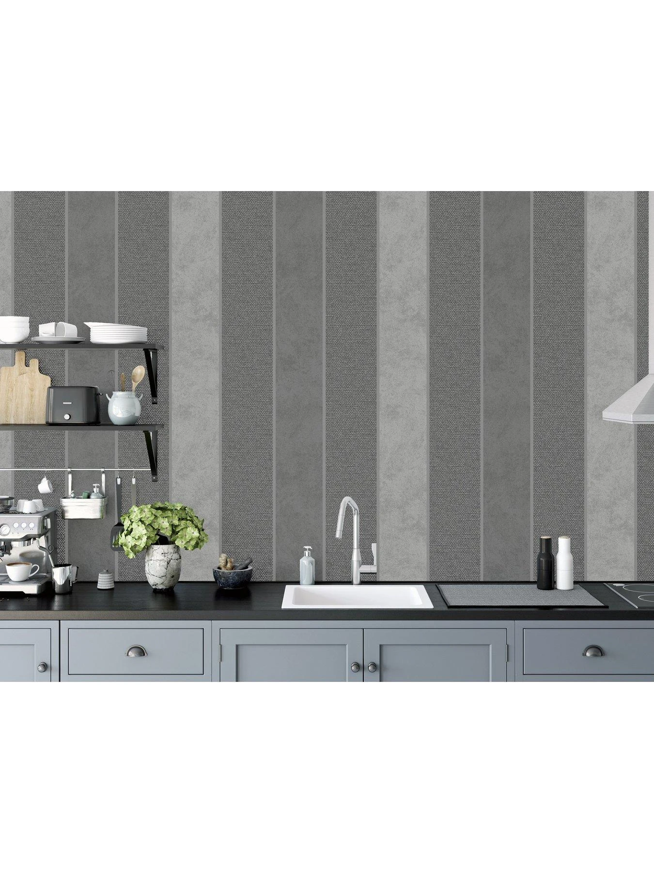 Arthouse Calico Stripe Gunmetal Grey Wallpaper