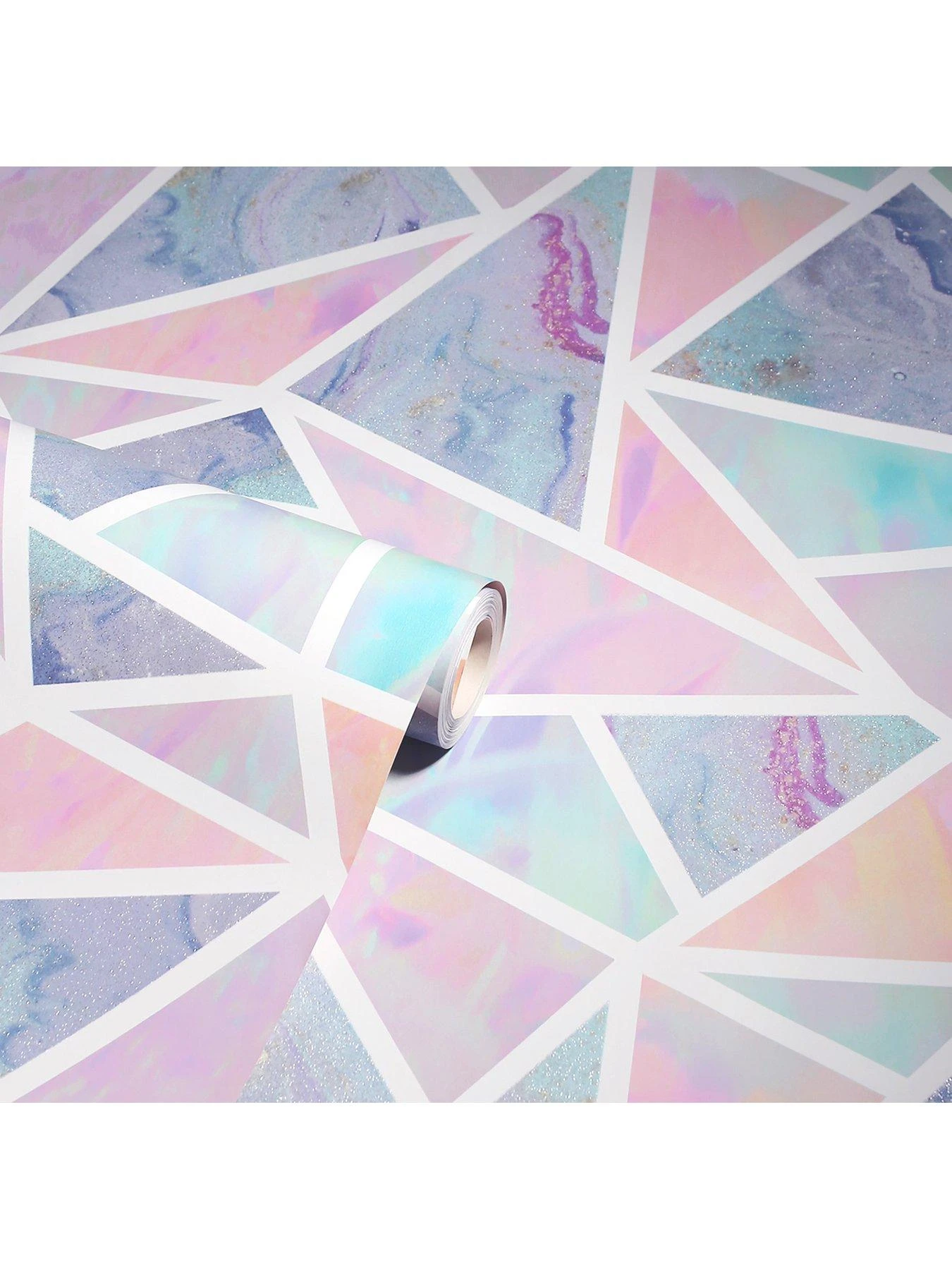 This geometric wallpaper beautifully combines different marble patterns that come in different shades of pink and purple to really brighten up any room. The geometric pattern is finished off with glitter highlight that will catch the light beautifully, this wallpaper is all about contrasts. A striking geometric tile print – a nod to retro design yet brought right up to date. This is a paper that works well on a feature wall or throughout a room, to maximise your style.