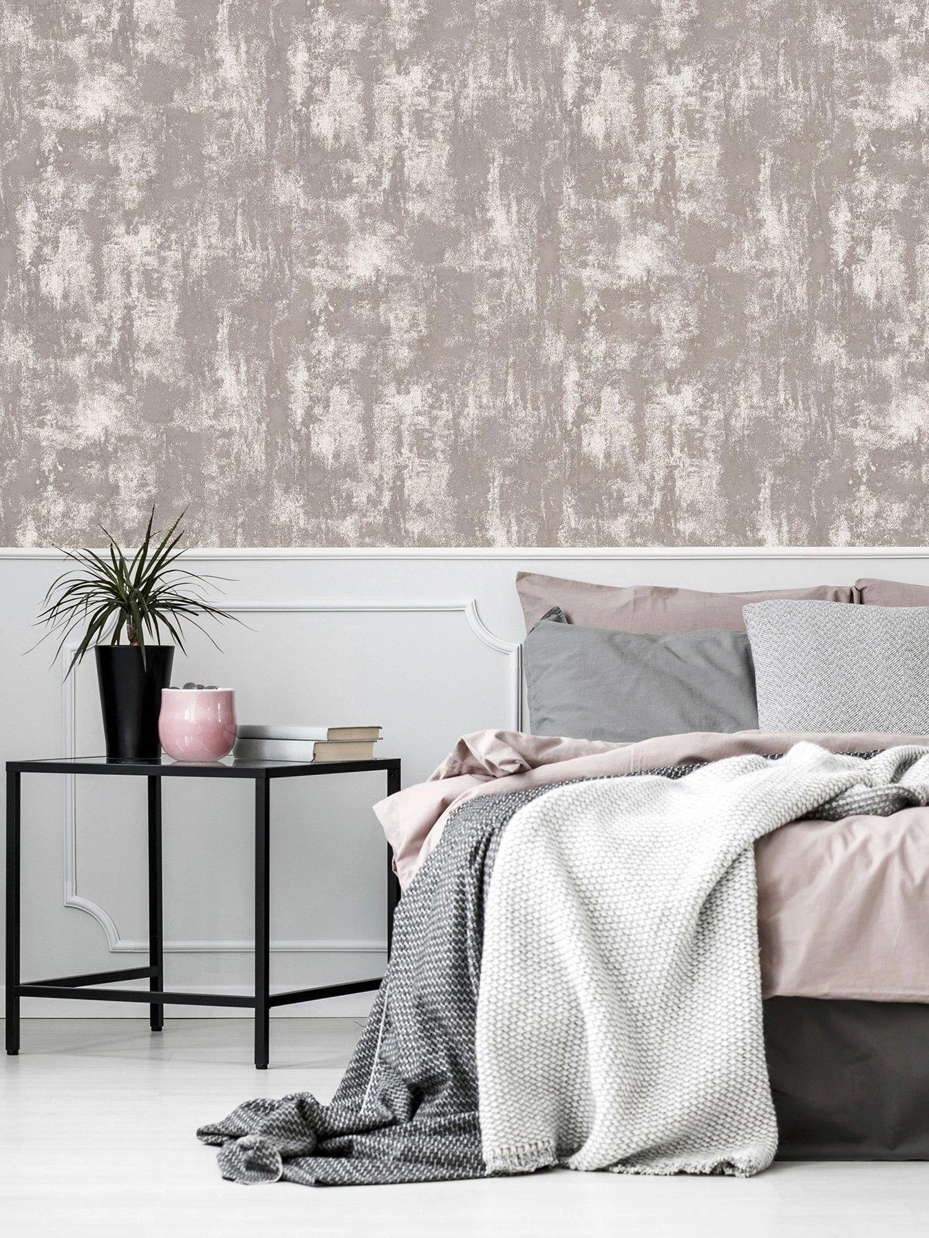 Add a natural vibe to your room with this striking and modern wallpaper. Blending a rough textured stone effect with subtle metallic highlights, the overall look is lived-in yet luxurious – and the mixture of blush pink and rose gold tones introduce a sense of indulgent warmth. The perfect backdrop to a relaxed living room or dining room, this paper embraces the trend for minerals and organic effects.