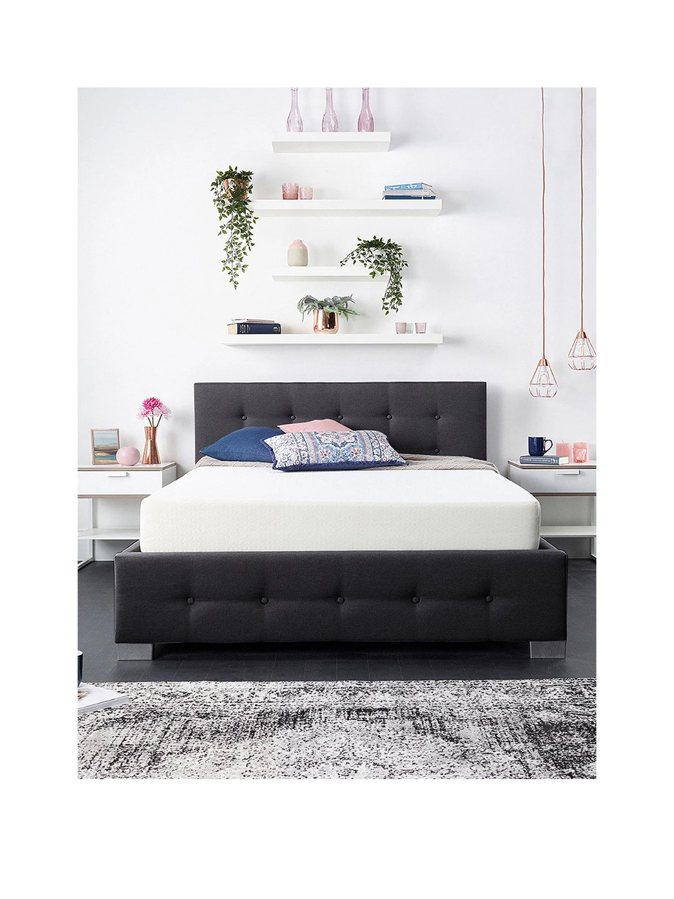 It comes in a black shade you can match with all kinds of decors and bedding designs, and the mattress base can be manually lifted with the help of the hydraulic pistons to reveal a roomy ottoman storage area that’s perfect for spare bedding and pillows.