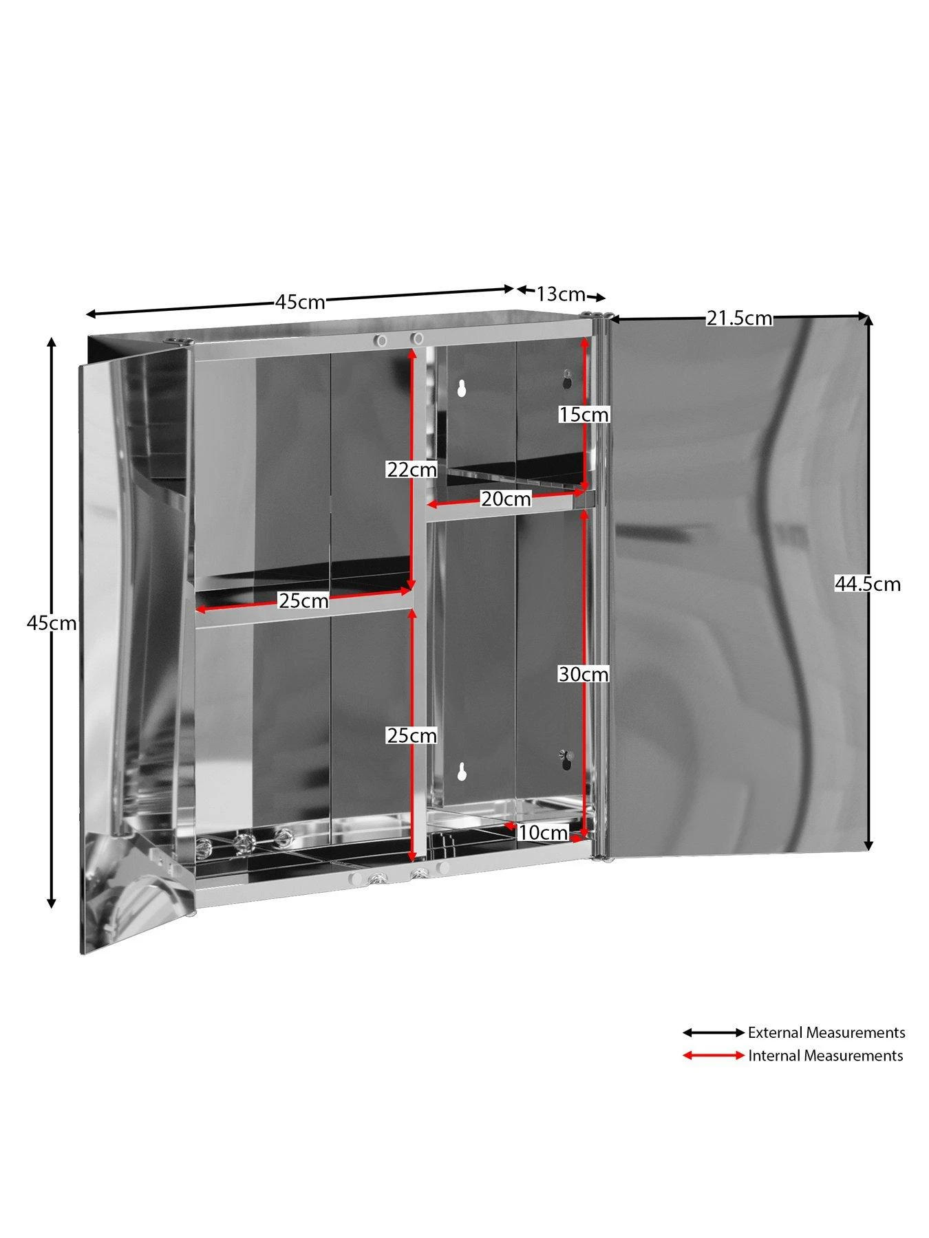 Bath Vida Tiano Stainless Steel Mirrored Double Cabinet