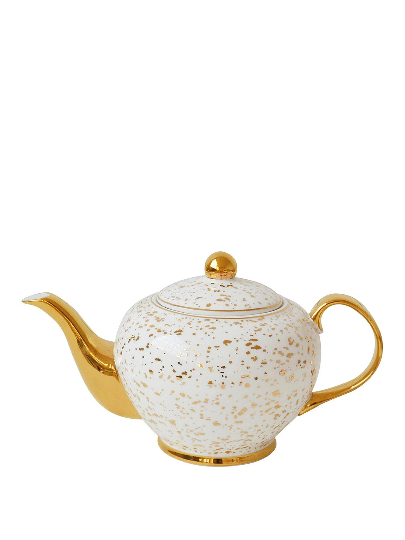 Made from white jade china, it’s covered in a series of gold splatters, along with an all-golden handle, spout, base and lid finial. These elements combine to create a stunning visual that’s sure to impress.