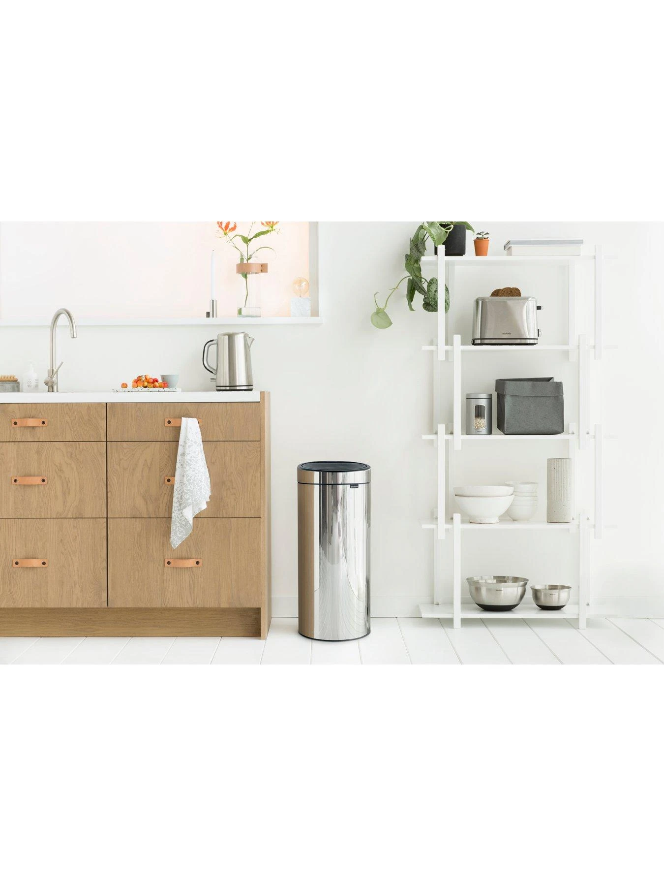 Brabantia 30 ltr Touch bin with a plastic inner bucket. Lid opens smoothly with one touch. Removable lid to change bin liners and to clean.
