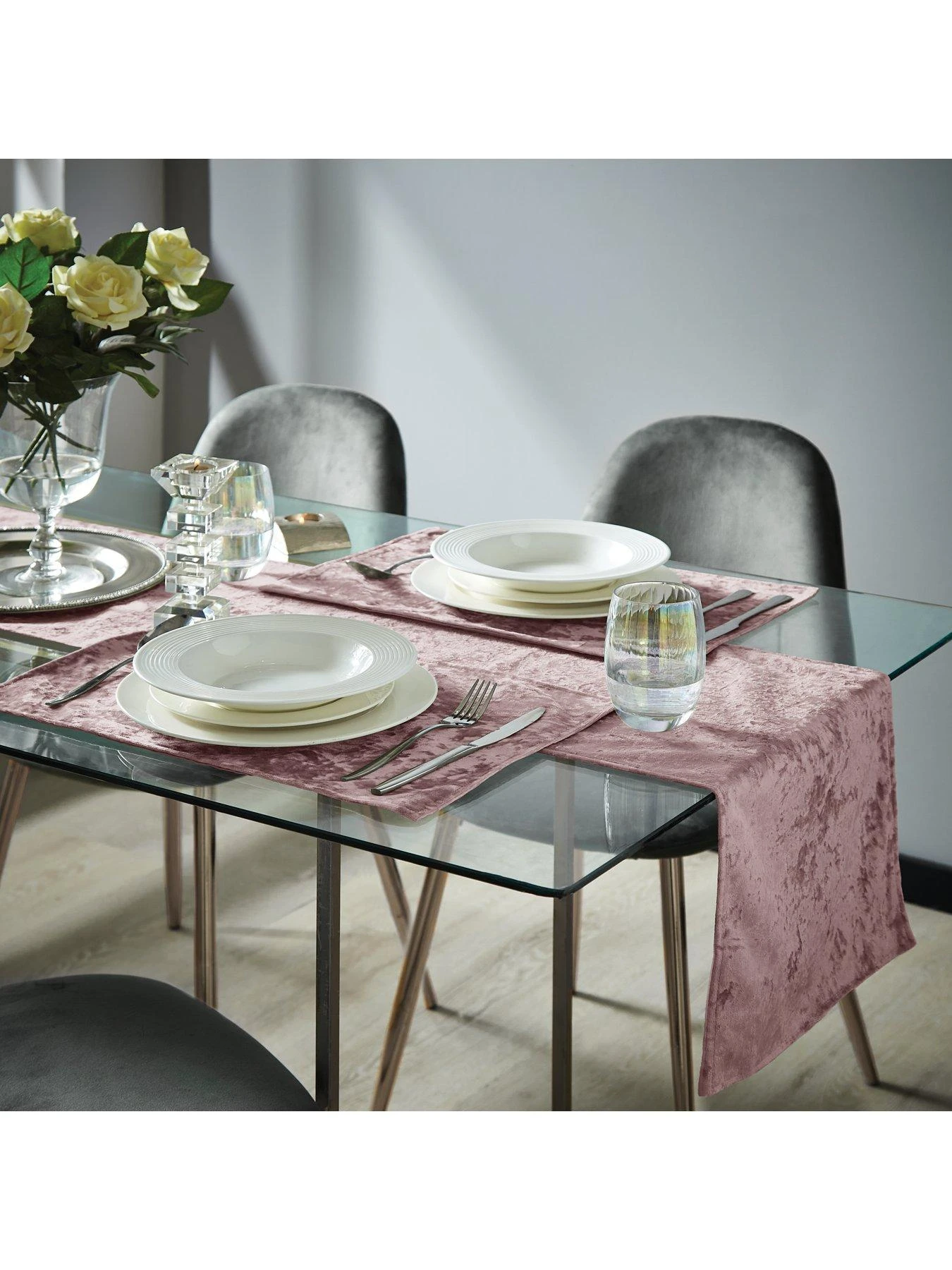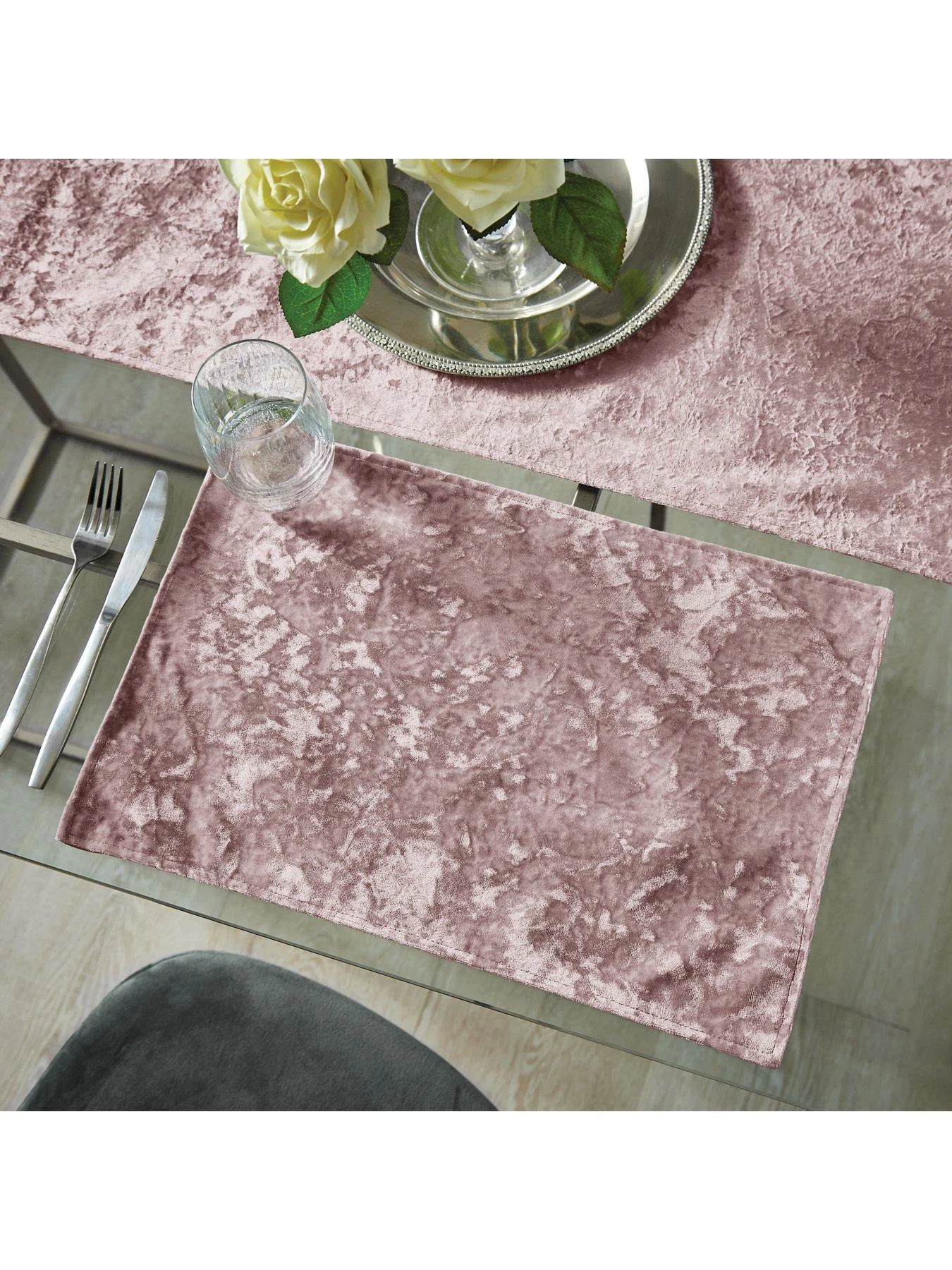 Catherine Lansfield Crushed Velvet Placemats in Blush – Set of 2
