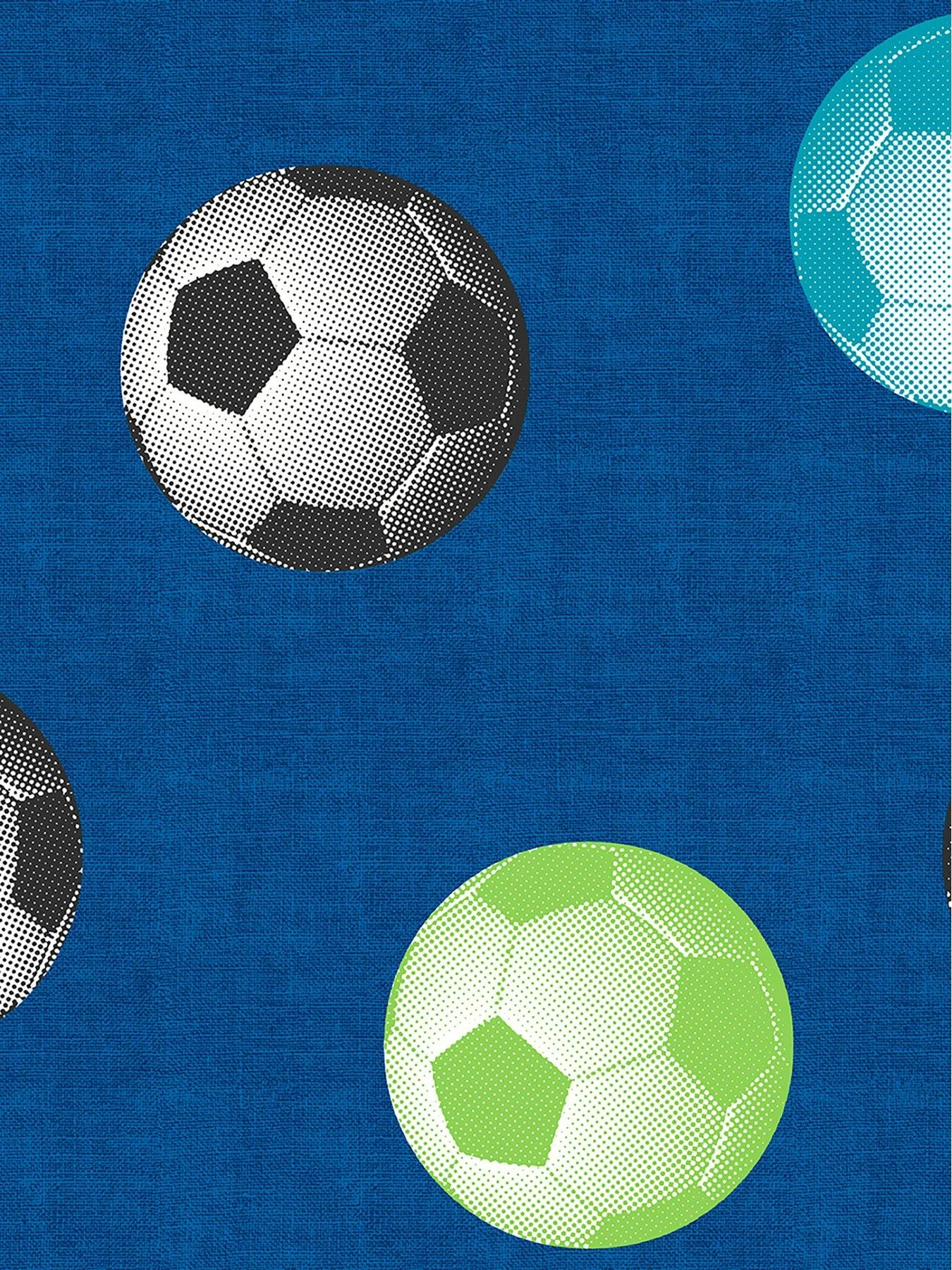 Footy mad? Transform their room into a football fan’s dream with this cool wallpaper design featuring footballs in bright shades of blue and green.