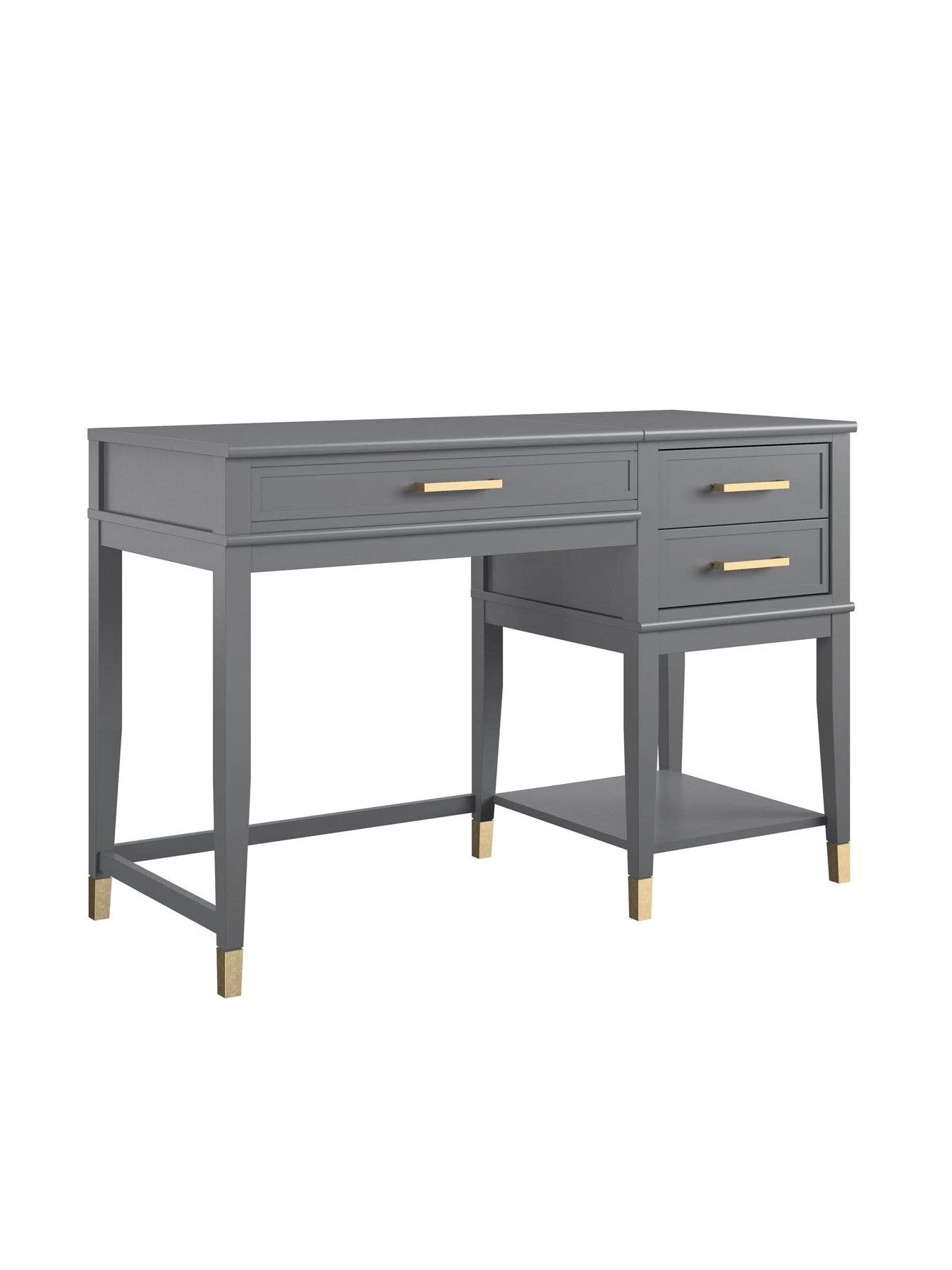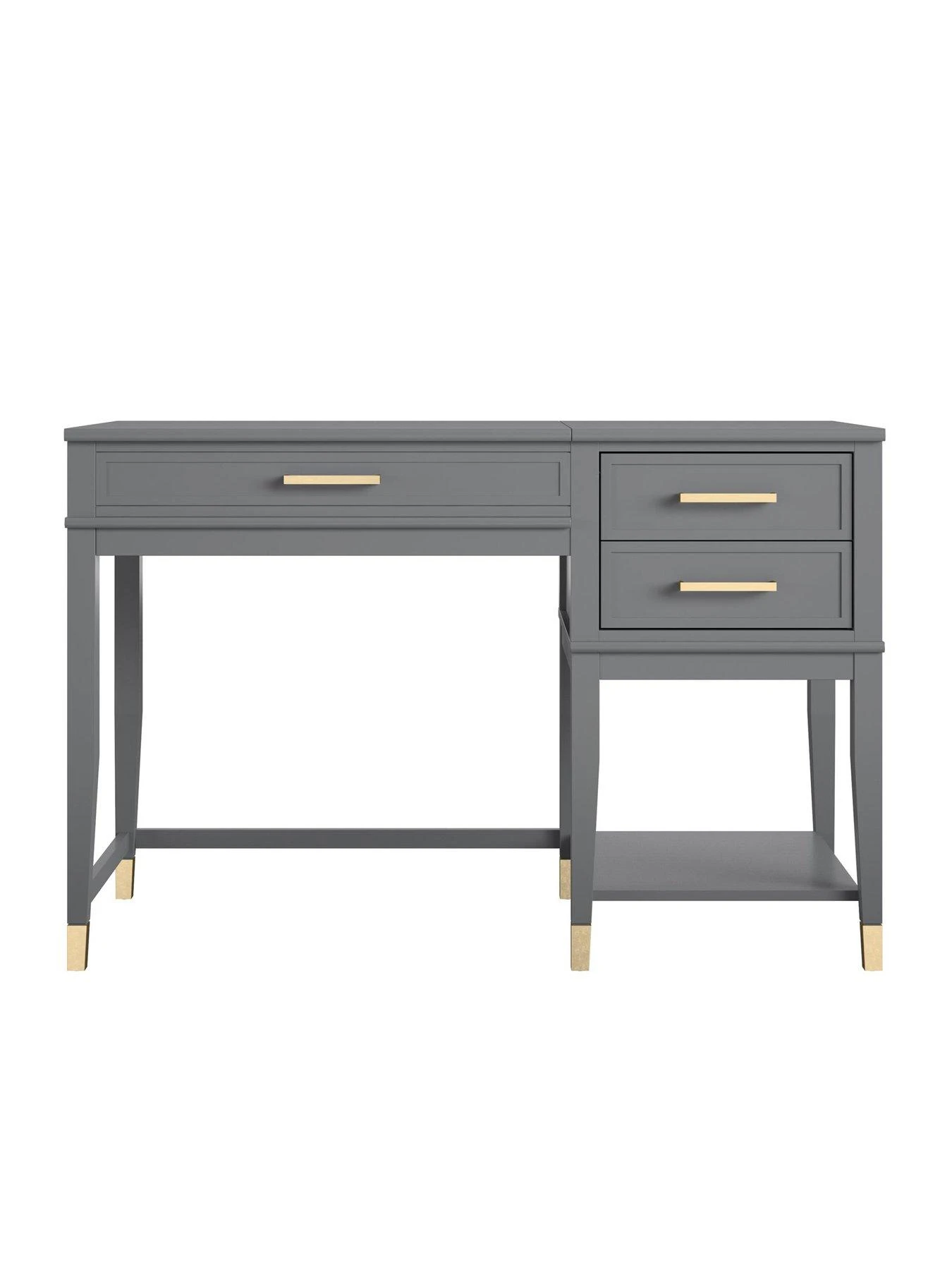In a bold graphite grey colour, it’s accented with rich gold handles and dipped feet Westerleigh Lift Desk. Accented with trendy gold hardware and dipped feet, its two drawers and low shelf offer lots of room for your work essentials.