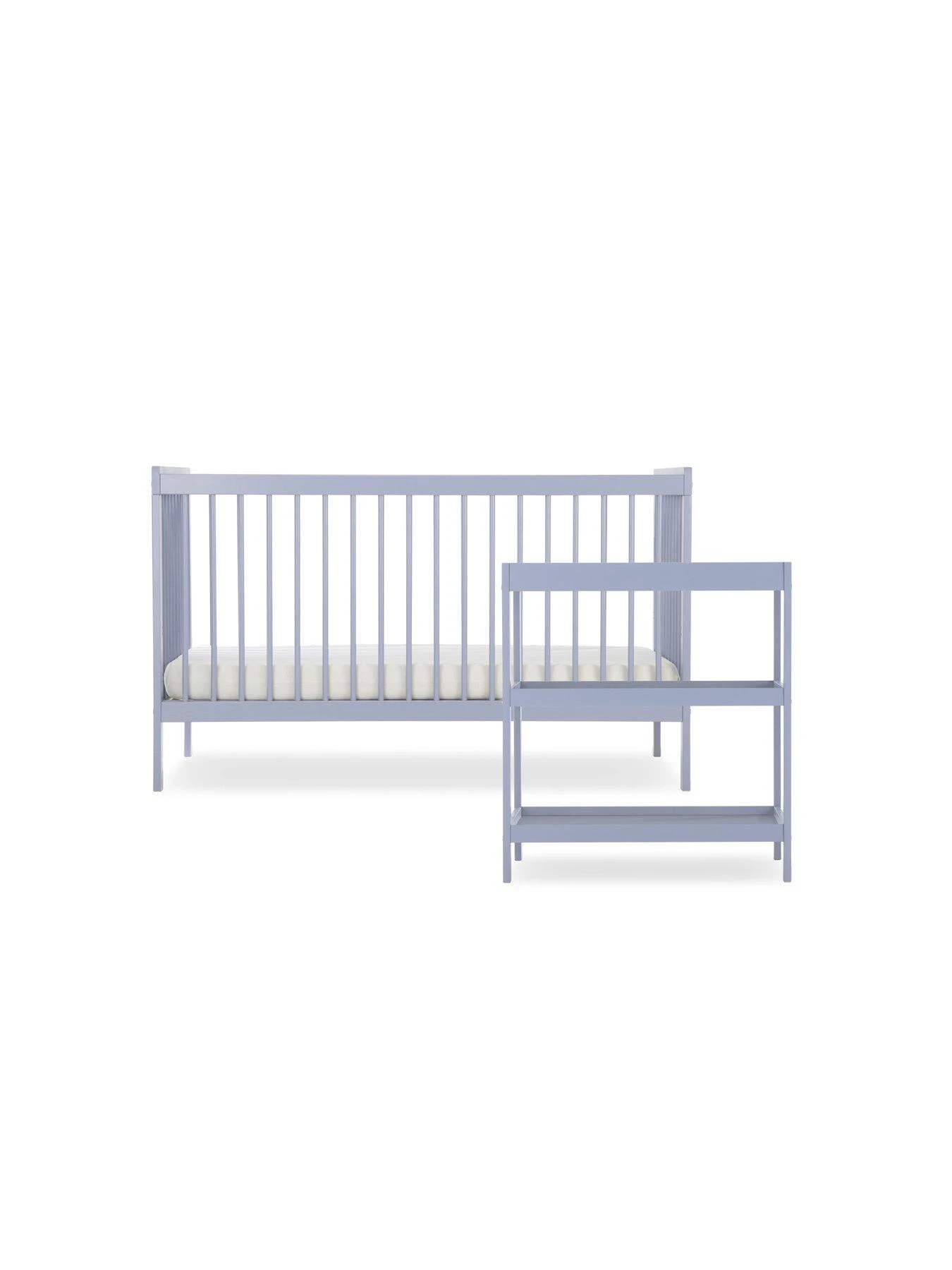 This stylish CuddleCo Nola Flint Blue 2-Piece Nursery Furniture Set features a convertible cot bed and beautiful changer.