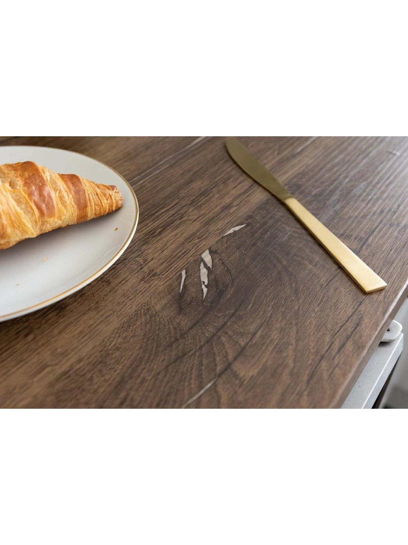 Heat-resistance up to 75 degrees Celsius ensure it will withstand the heat from hot cups and plates (but not pans) when used on kitchen counters, and you can also add sealant along the edges to make it watertight if it’s near a sink or bath.