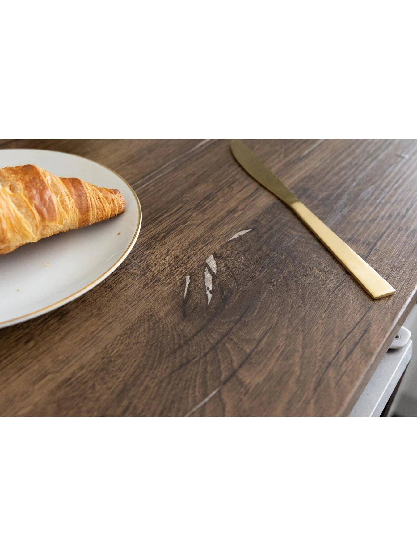 Heat-resistance up to 75 degrees Celsius ensure it will withstand the heat from hot cups and plates (but not pans) when used on kitchen counters, and you can also add sealant along the edges to make it watertight if it’s near a sink or bath.