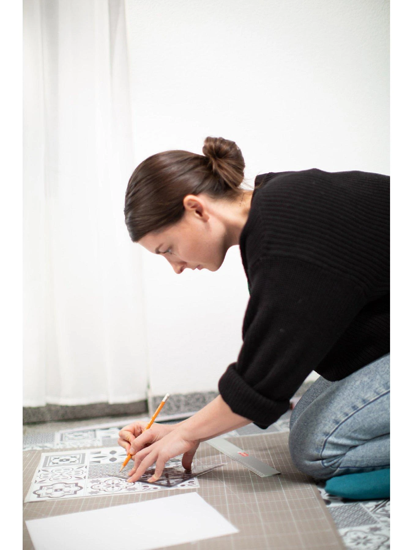 dc fix peel and stick vinyl floor tiles instantly refresh your décor and are easy to apply. The water-resistant finish makes them ideal for kitchen and bathrooms, though not suitable for wet rooms. No need to grout, this is optional. Apply only to clean smooth flat surfaces like ceramic tiles, wood flooring or hardboard can be laid first, for a better finish. Avoid uneven surfaces like floor boards, floating floors eg. laminate, concrete, lino, carpet or radiant heated floors, note dirty surfaces will prevent the adhesive from bonding. The tiles can be cut to size and around awkward shapes, using a utility knife, follow any pattern guide which is shown on the reverse of the tile, if you make a mistake, lift up and re-apply. Wipe clean with regular household cleaner, use vacuums and mops as normal, 5 days after application. You can fully remove the tiles by lifting the corner and peeling back, heat from a hairdryer can help soften the adhesive.