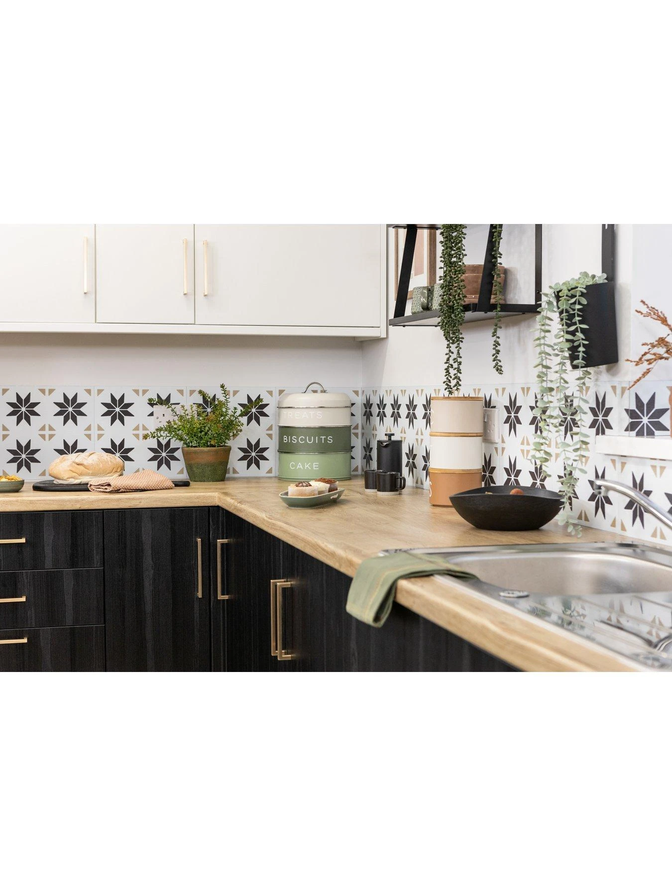 Heat-resistant up to 75 degrees Celsius, it will withstand the heat from hot cups and plates (but not pans) when used on kitchen counters, and you can also add sealant along the edges to make it watertight. Not only does this mean you can apply it in the kitchen, above a sink or near your hob, but also around your bath.