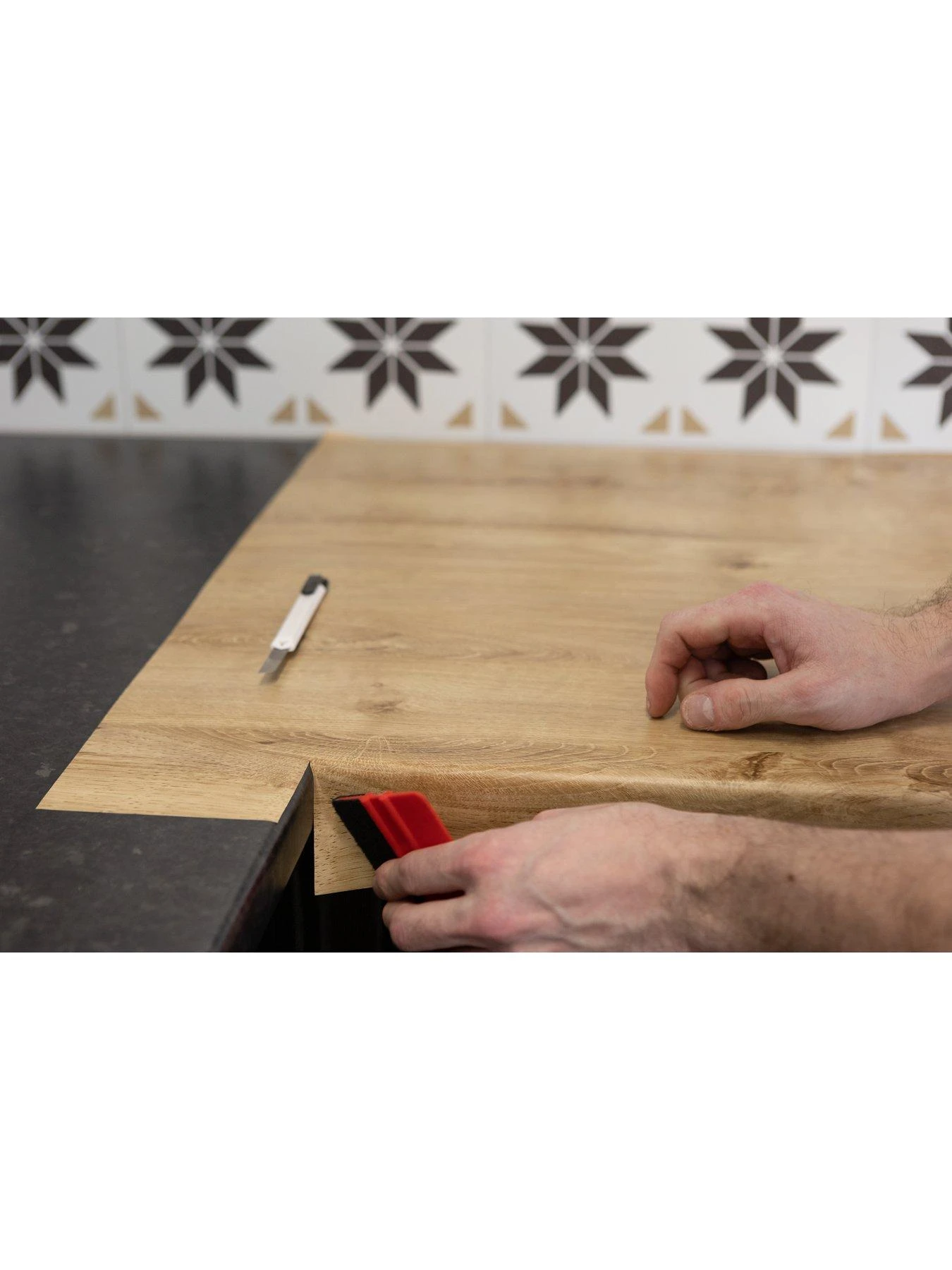 It’s naturally pliable and easy to wrap around corners or worktop edges, however you can also gently warm it with a hairdryer to make things even simpler.