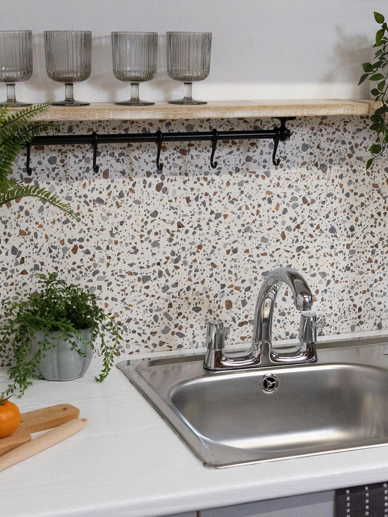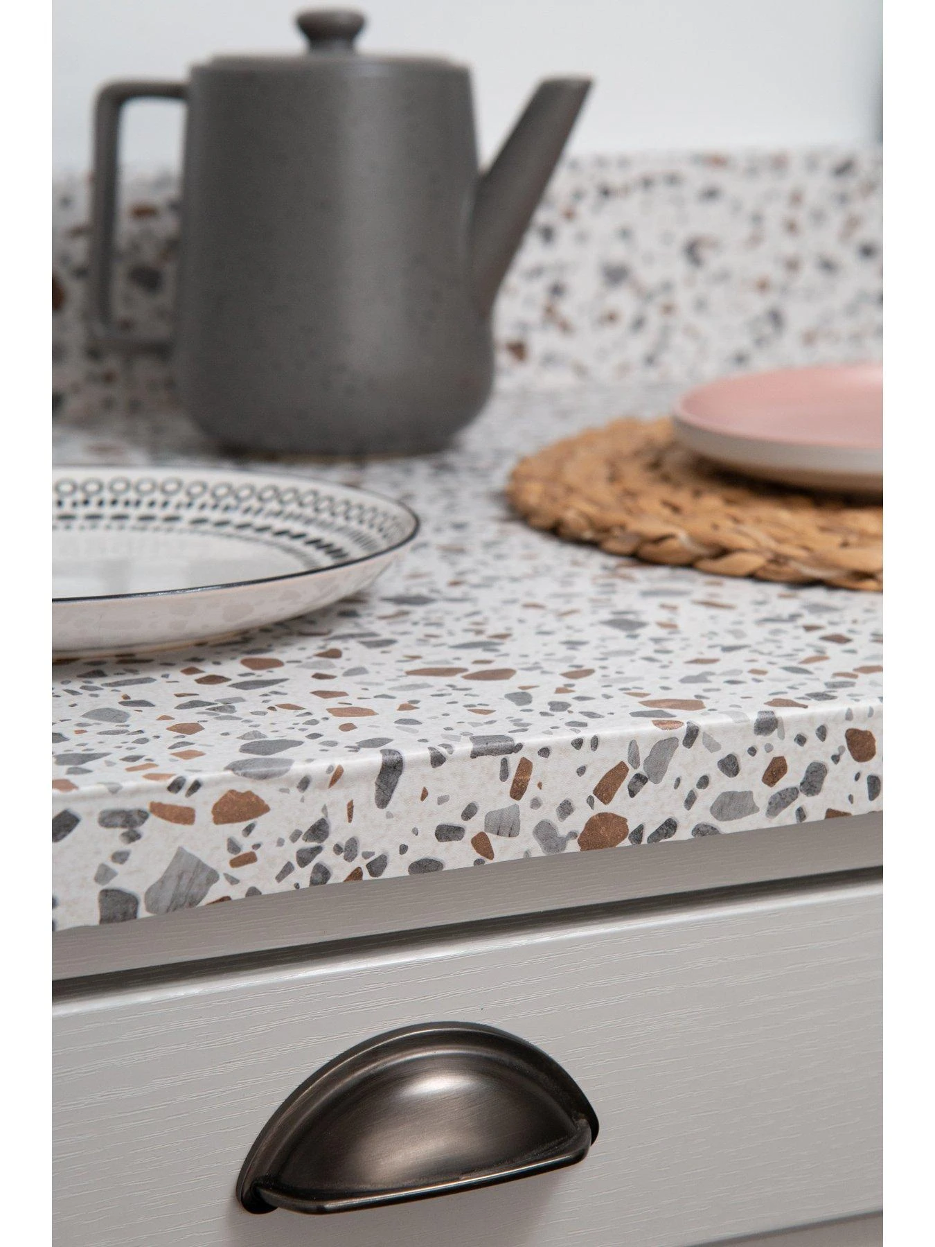 dc fix stone self adhesive vinyl film designs are so authentic, you will hardly believe it’s not real terrazzo. Rejuvenate a worktop or wrap kitchen doors in minutes, giving them a refreshing new look and saving the cost of buying new.
