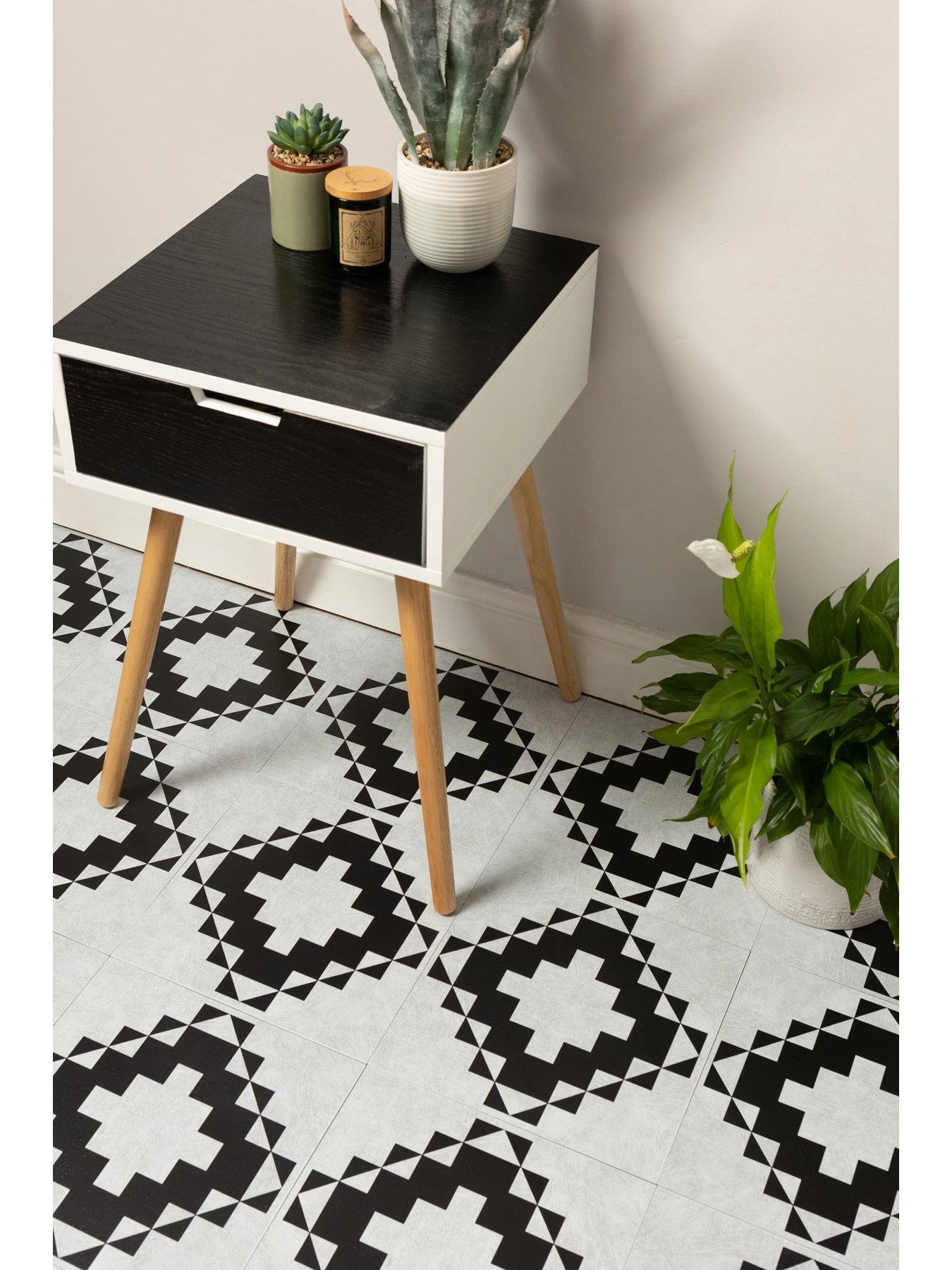 dc fix peel and stick vinyl floor tiles instantly refresh your décor and are easy to apply. The water-resistant finish makes them ideal for kitchen and bathrooms, though not suitable for wet rooms. No need to grout, this is optional. Apply only to clean smooth flat surfaces like ceramic tiles, wood flooring or hardboard can be laid first, for a better finish. Avoid uneven surfaces like floor boards, floating floors eg. laminate, concrete, lino, carpet or radiant heated floors, note dirty surfaces will prevent the adhesive from bonding. The tiles can be cut to size and around awkward shapes, using a utility knife, follow any pattern guide which is shown on the reverse of the tile, if you make a mistake, lift up and re-apply. Wipe clean with regular household cleaner, use vacuums and mops as normal, 5 days after application. You can fully remove the tiles by lifting the corner and peeling back, heat from a hairdryer can help soften the adhesive.