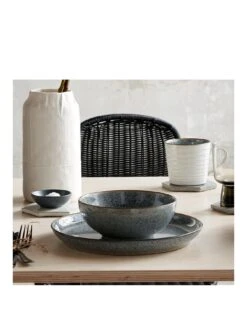 Denby’s 16 piece Studio Grey set is hand-crafted and styled by experts to enhance durability, beauty and versatility. Produced from the highest-quality clay at Denby Pottery, the 16 Piece Tableware Set has been designed to last. The set includess 4 x Dinner Plates, 4 x Medium Plates, 4 x Cereal Bowls, 2 x White Mugs and 2 x Grey Mugs. With a dramatic charcoal band of colour framing the rim of the items and its contemporary granite and quartz-coloured textured, reactive glazes, Studio Grey creates a casual, uncluttered yet impactful look which works around the home and far beyond the kitchen. The stunning glaze inspired by the textures found in natural stone are tough enough for everyday and stunning enough for best.