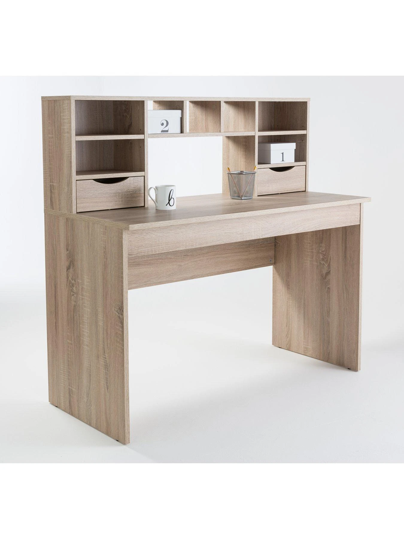 Albion Desk with 2 Storage Drawers and Shelves – Oak Effect Finish