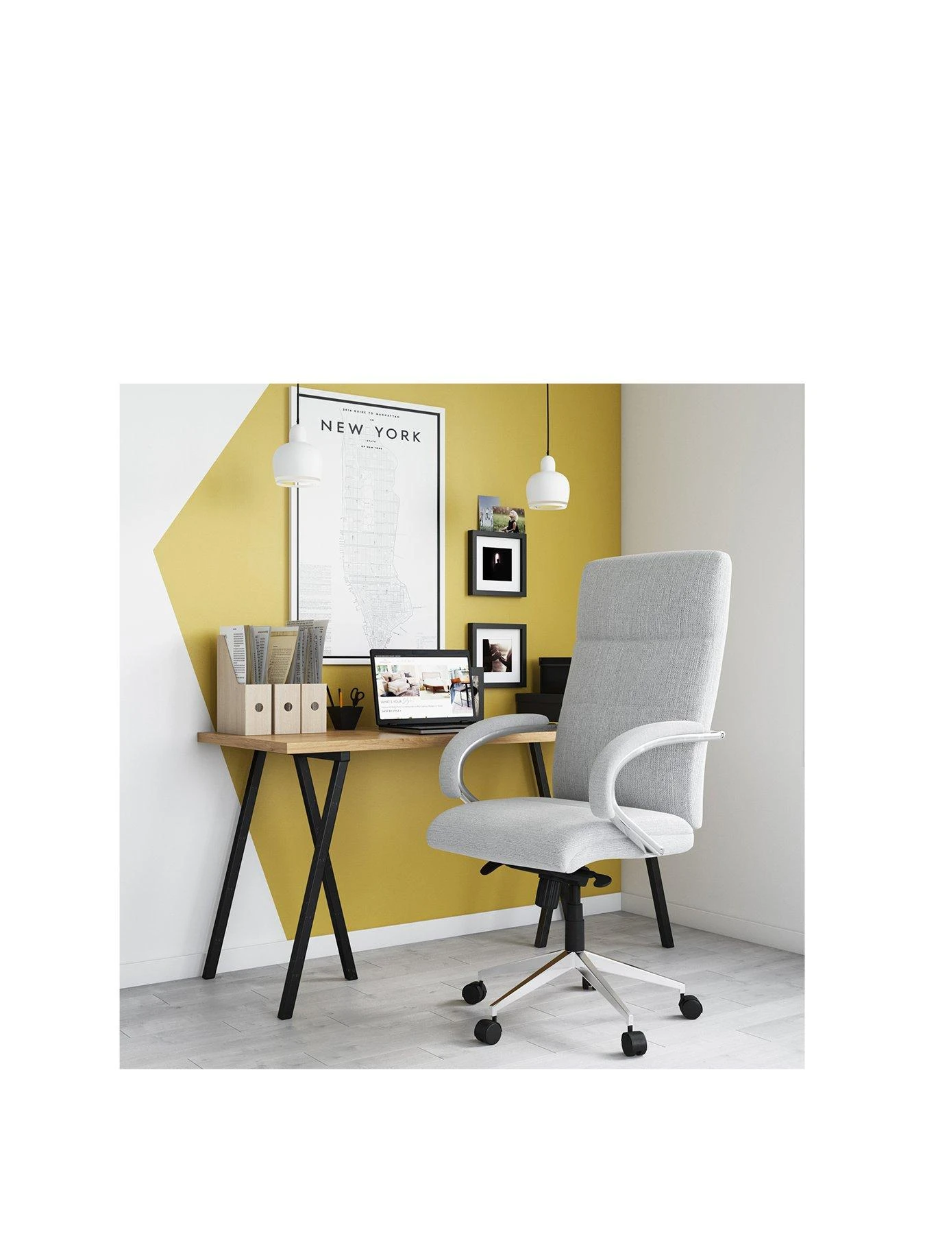 It’s finished with a contrasting chrome base and benefits from both height adjustment and tension controlled tilt lock.