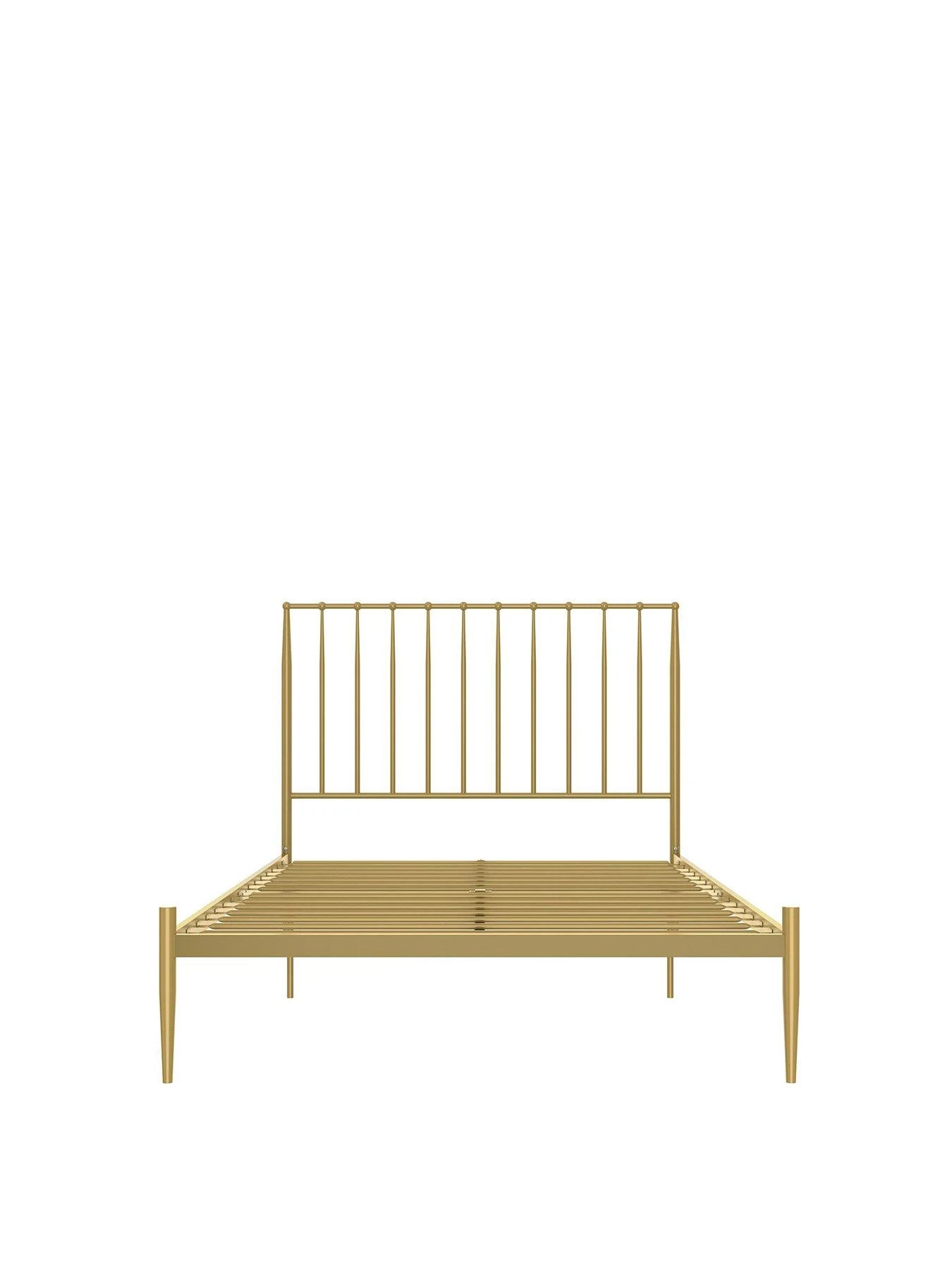 Lusciously lavish and eye-catchingly chic, this Giulia bed frame by Dorel Home splashes your sleep space in a rich elegance thanks to the shiny gold coloured finish to the metal frame that catches the light brilliantly.