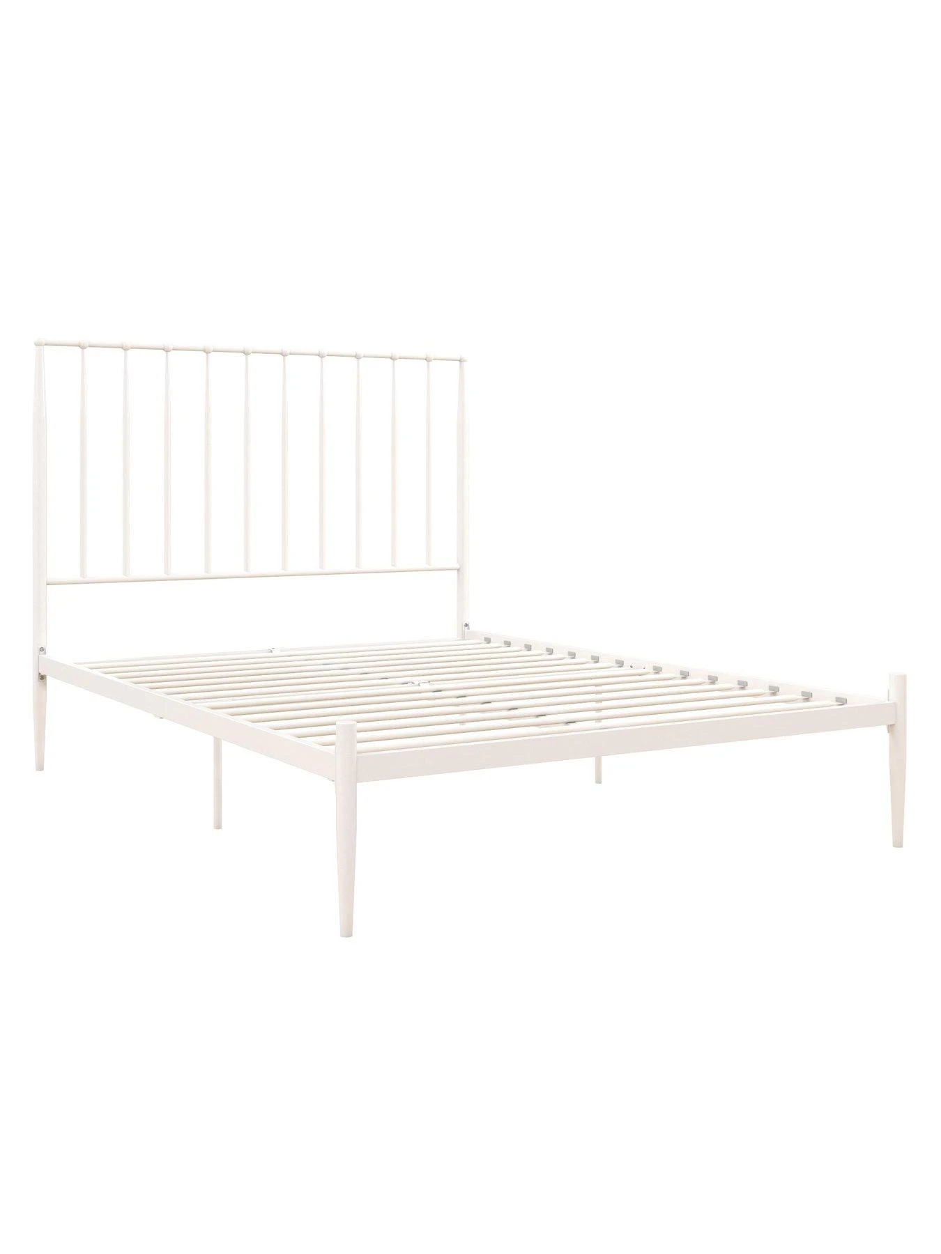 Made from sturdy metal, it comes in bedroom brightening white finish that will go with all sorts of room styles and bedding colours. The stunning headboard features tapered finials which are echoed by the legs, giving it a slimline appearance that won’t overwhelm your room.