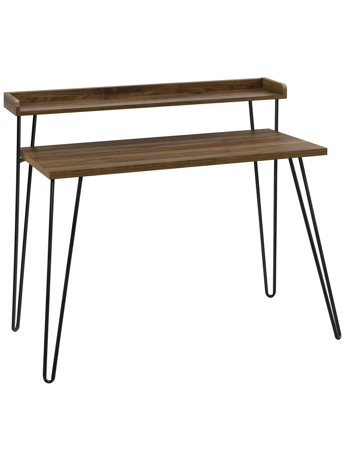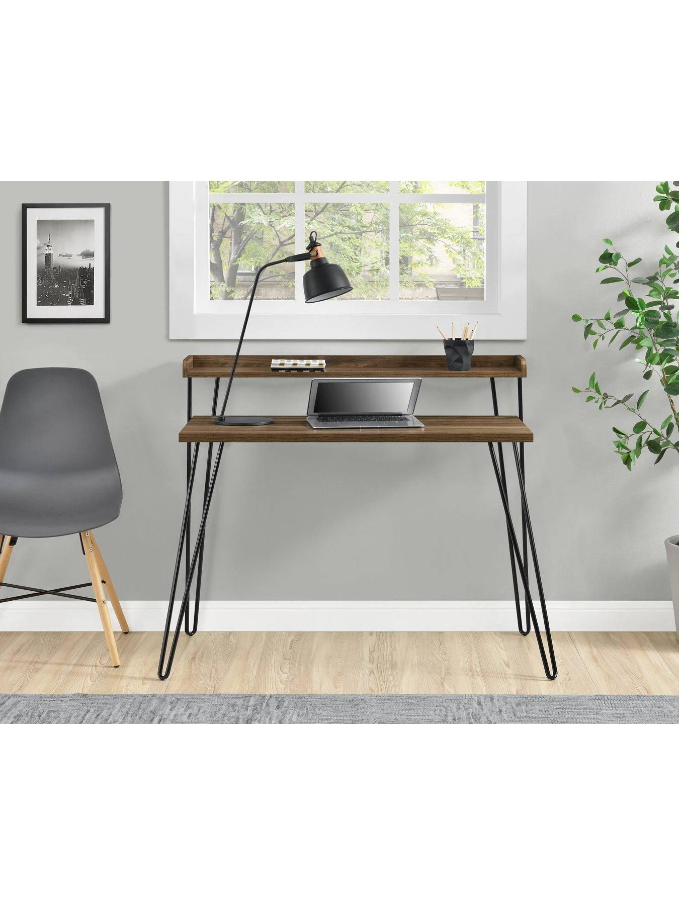 - A choice of finish desk top surfaces and metal hairpin style legs bring an updated style to your décor