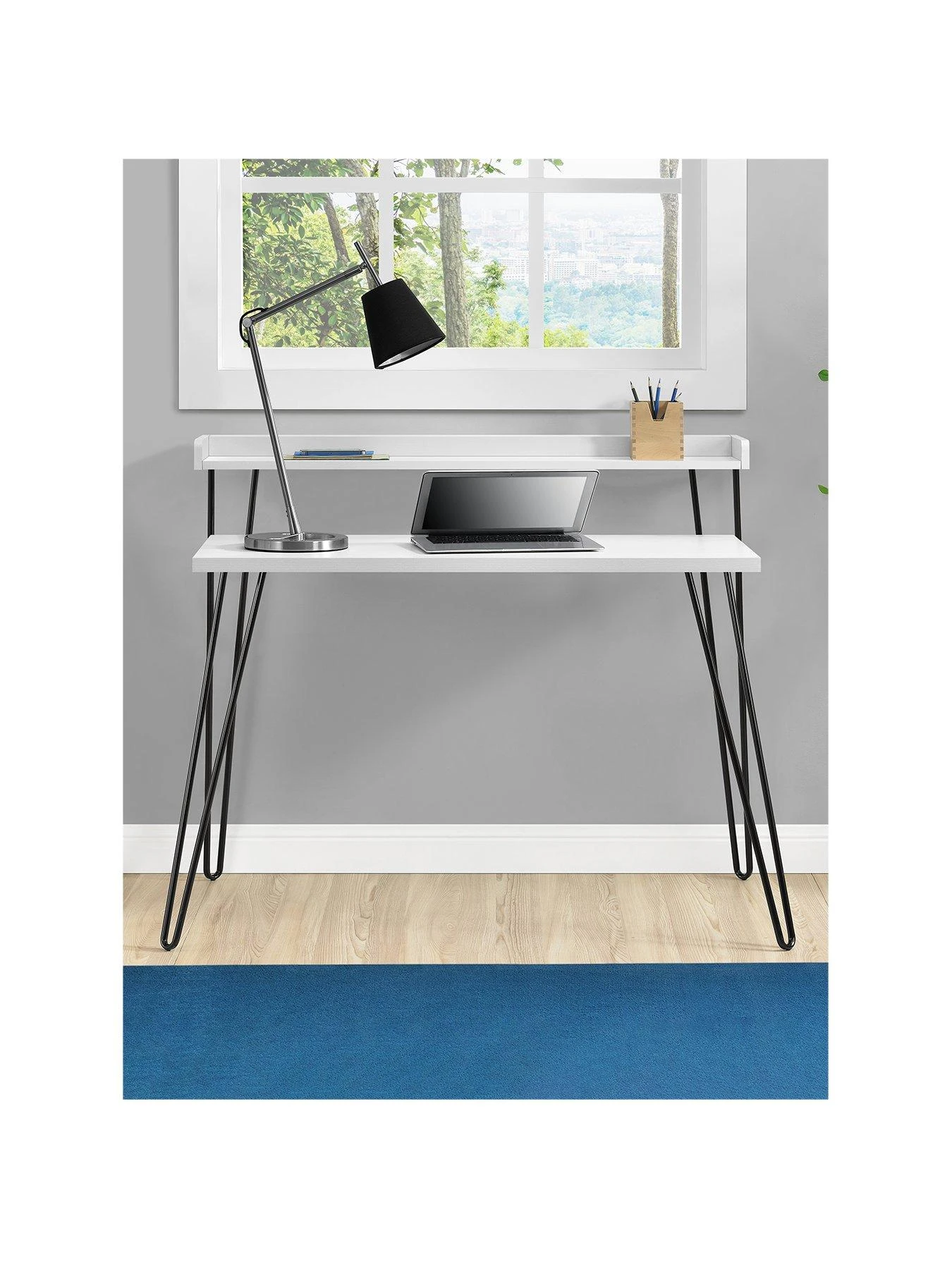 - A choice of finish desk top surfaces and metal hairpin style legs bring an updated style to your décor