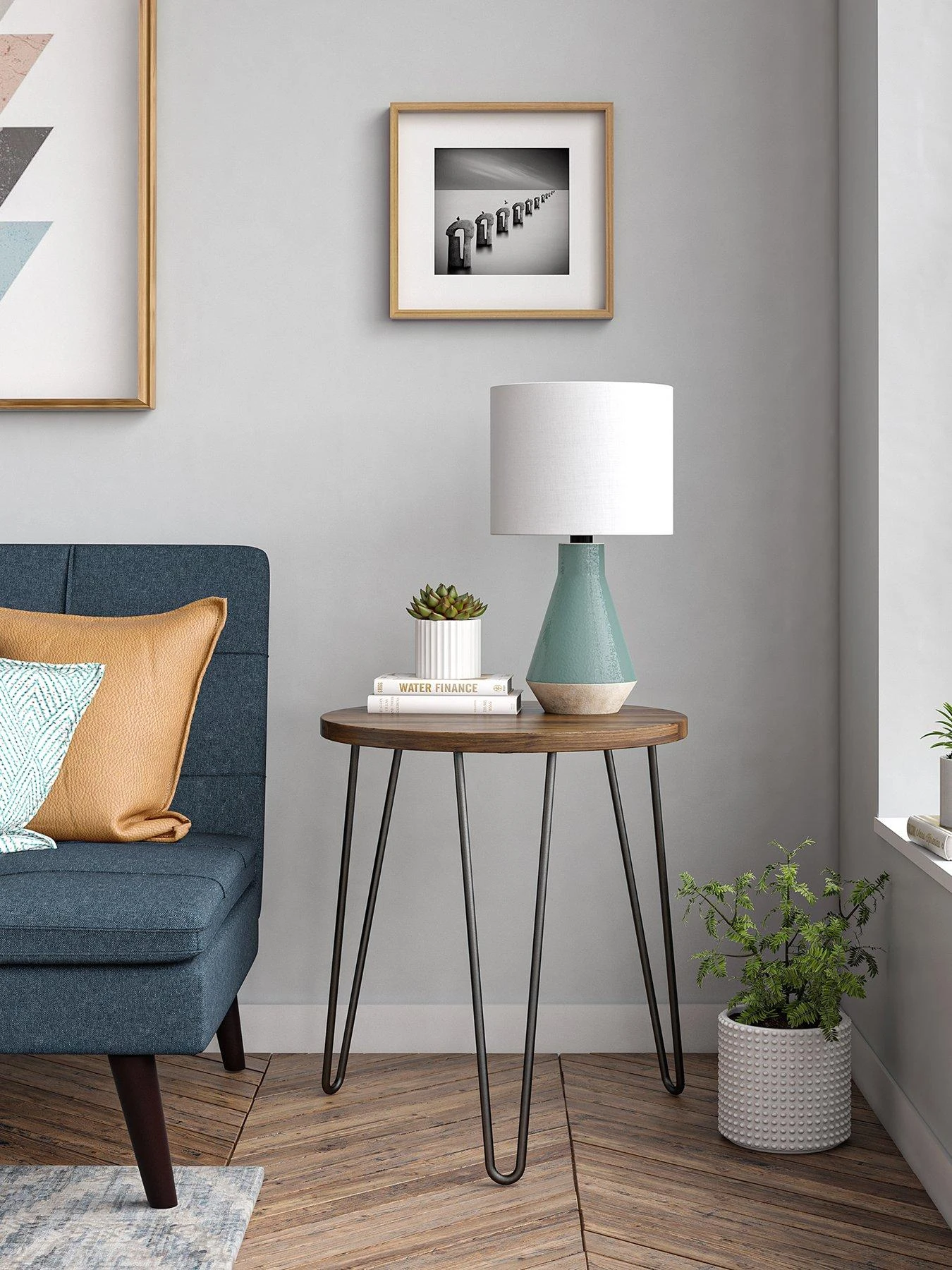- Crafted in mid-century design, the Owen Retro Round End Table offers an industrial feel for your living room