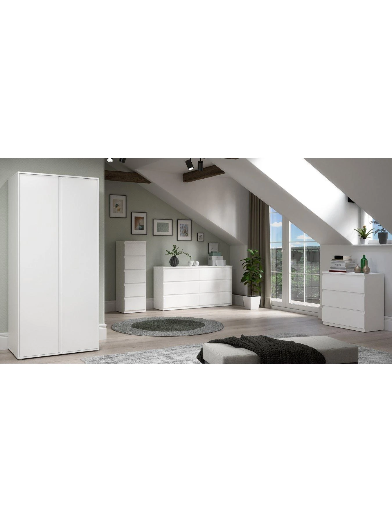 Available separately in this extensive collection are wardrobes, a chest of drawers and more. And if you prefer a more traditional appearance, you can also find oak-effect options – search Lisson to see the full range.
