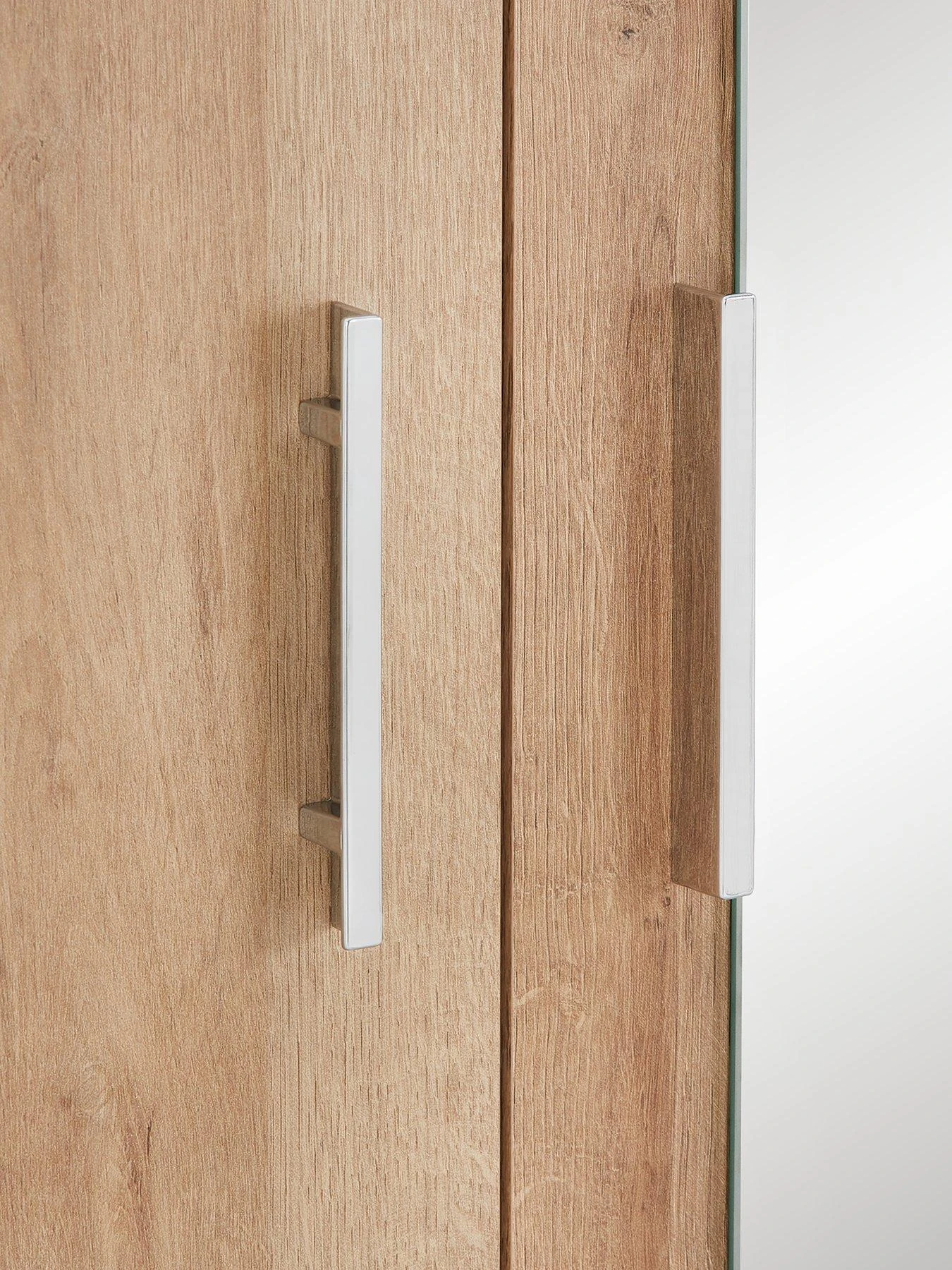 Four drawers sit on easy-glide metal runners for a smooth, friction-free opening, while the open section features a mirror plus shelving for all your beauty essentials. The wardrobe is finished with metal handles for a sleek, modern accent.