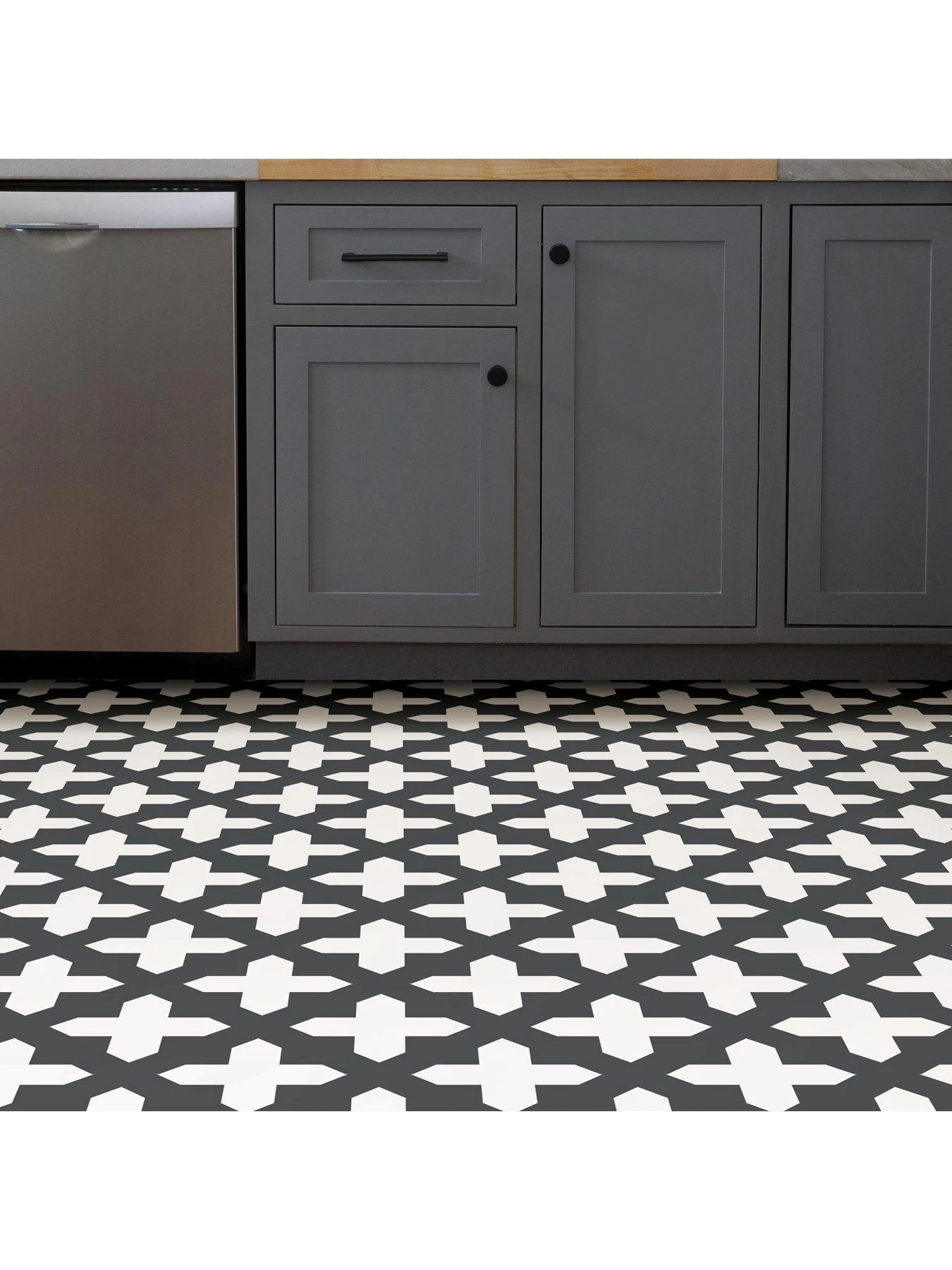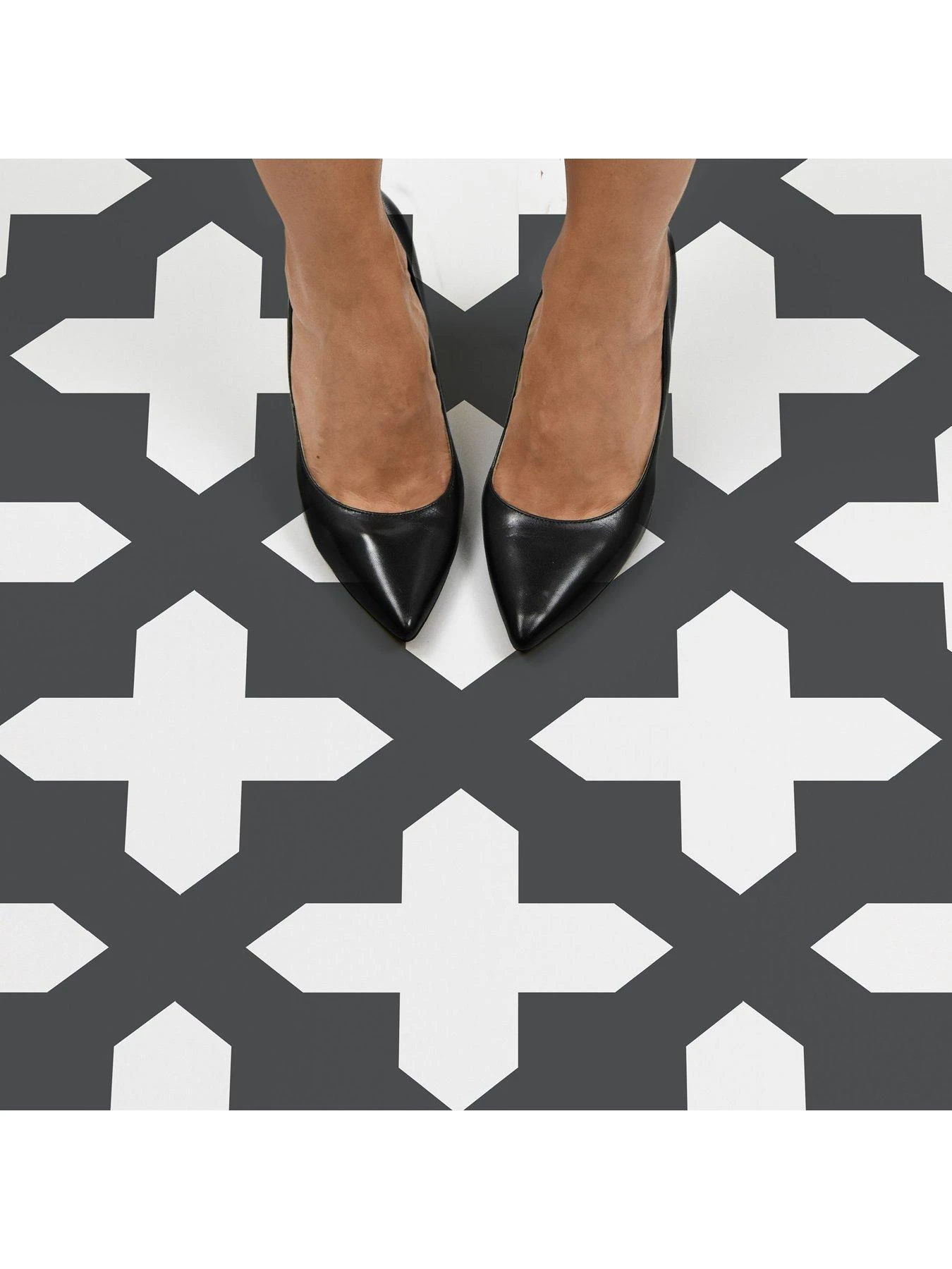 This pack will bring a dramatic feel to your kitchen or bathroom. Each tile captures the attention with a series of geometric crosses drawn in a classic black and white palette. Â Water-resistant and washable, these tiles are also incredibly easy to look after.