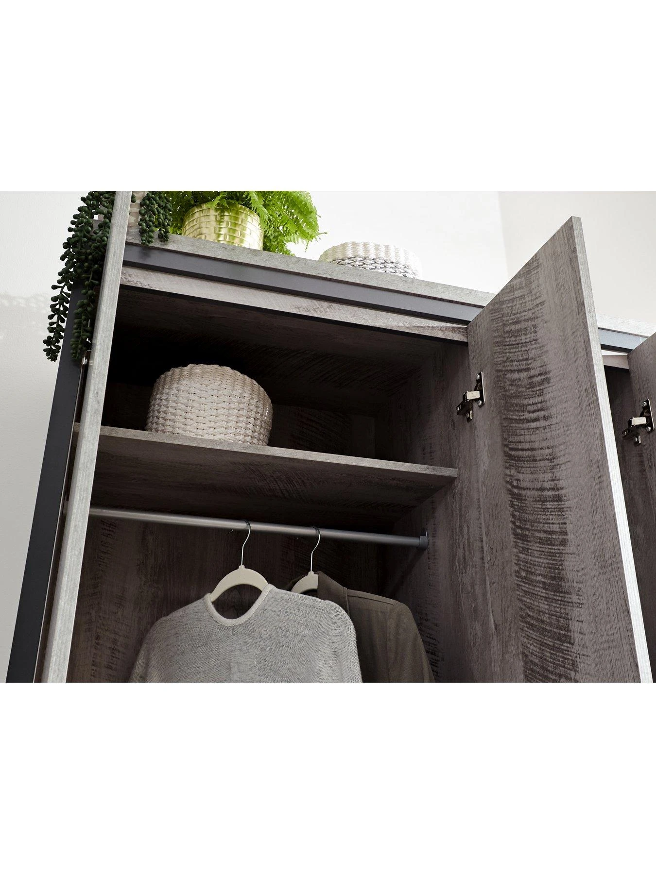 - Wardrobe contains Versatile deep shelving for shoes, folded clothes or out of season clothing