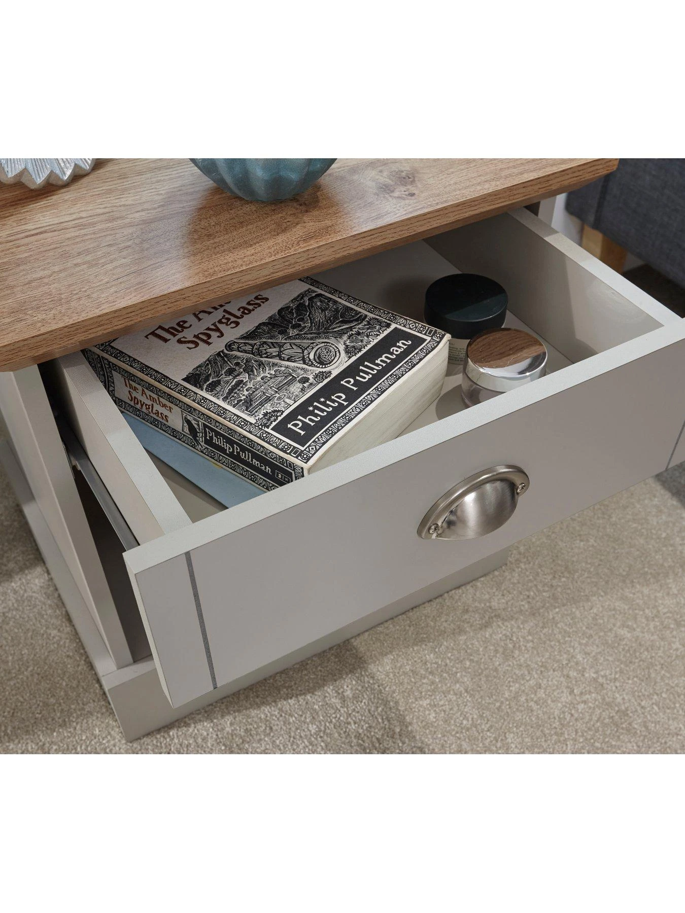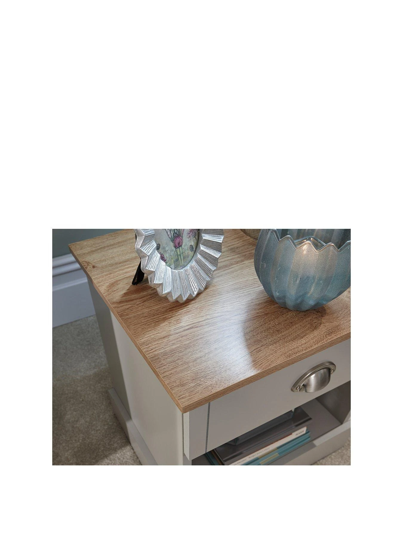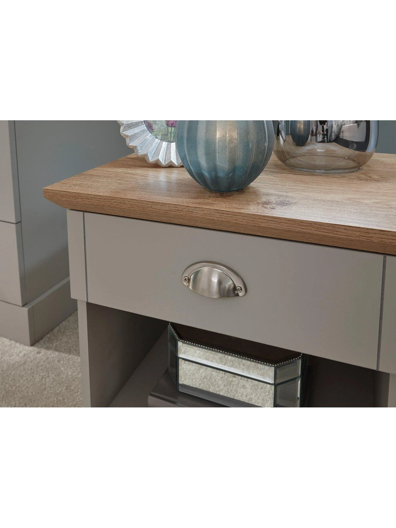 Both colour options are offset by the oak-effect top which is the perfect place for a lamp, while the single drawerĀ features aĀ metal cup handles and easy-glide metal runners.