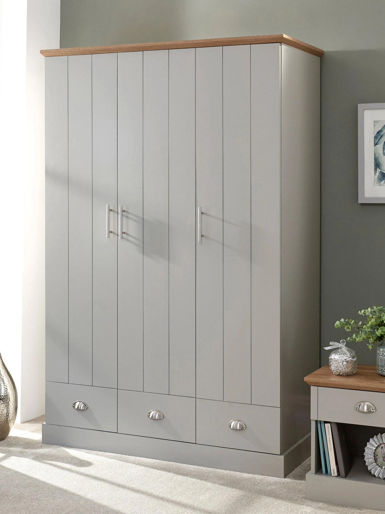GFW Kendal 3 Door, 3 Drawer Wardrobe in Blue or Grey