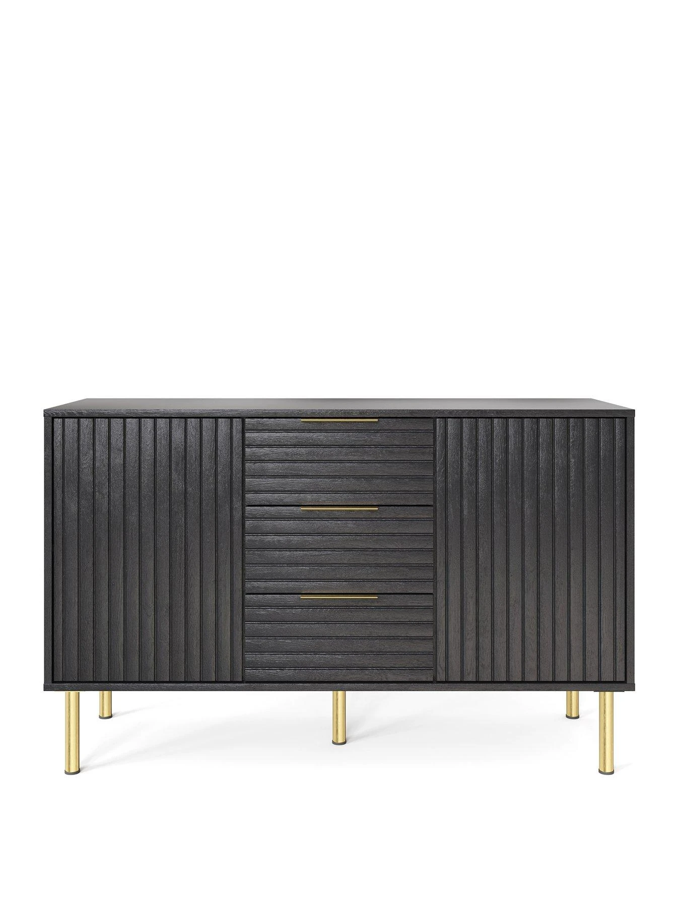 Discover the allure of our Nervata Sideboard, a functional masterpiece that combines elegance and storage. The wooden panels, enhanced with wood grain texture, create a sense of luxury and sophistication. With its captivating gold accents and sleek black design, the Nervata Sideboard is a statement piece that adds a touch of opulence to your dining or living area. In the Nervata Range, every piece is thoughtfully designed to offer a unique and exceptional experience. Whether it’s the coffee table, lamp table, sideboard, or TV unit, each one represents the perfect blend of elegance and functionality, allowing you to create a home that is truly a masterpiece.