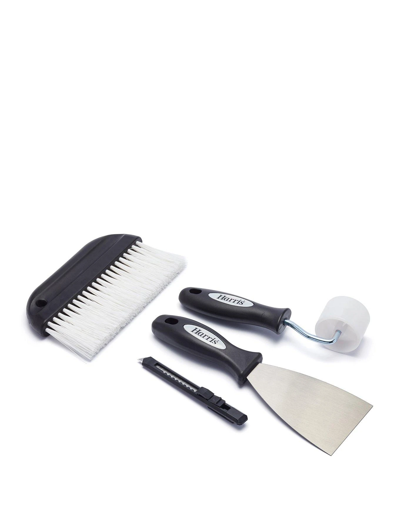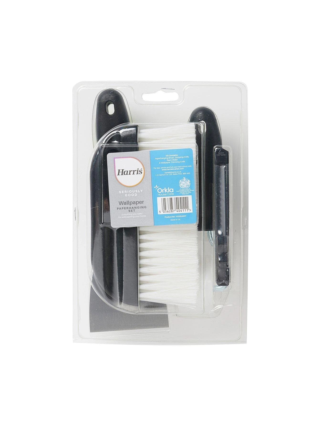 - Harris Paperhanging Brush, Stripping Knife, Seam Roller and Wallpaper Trimming Knife.