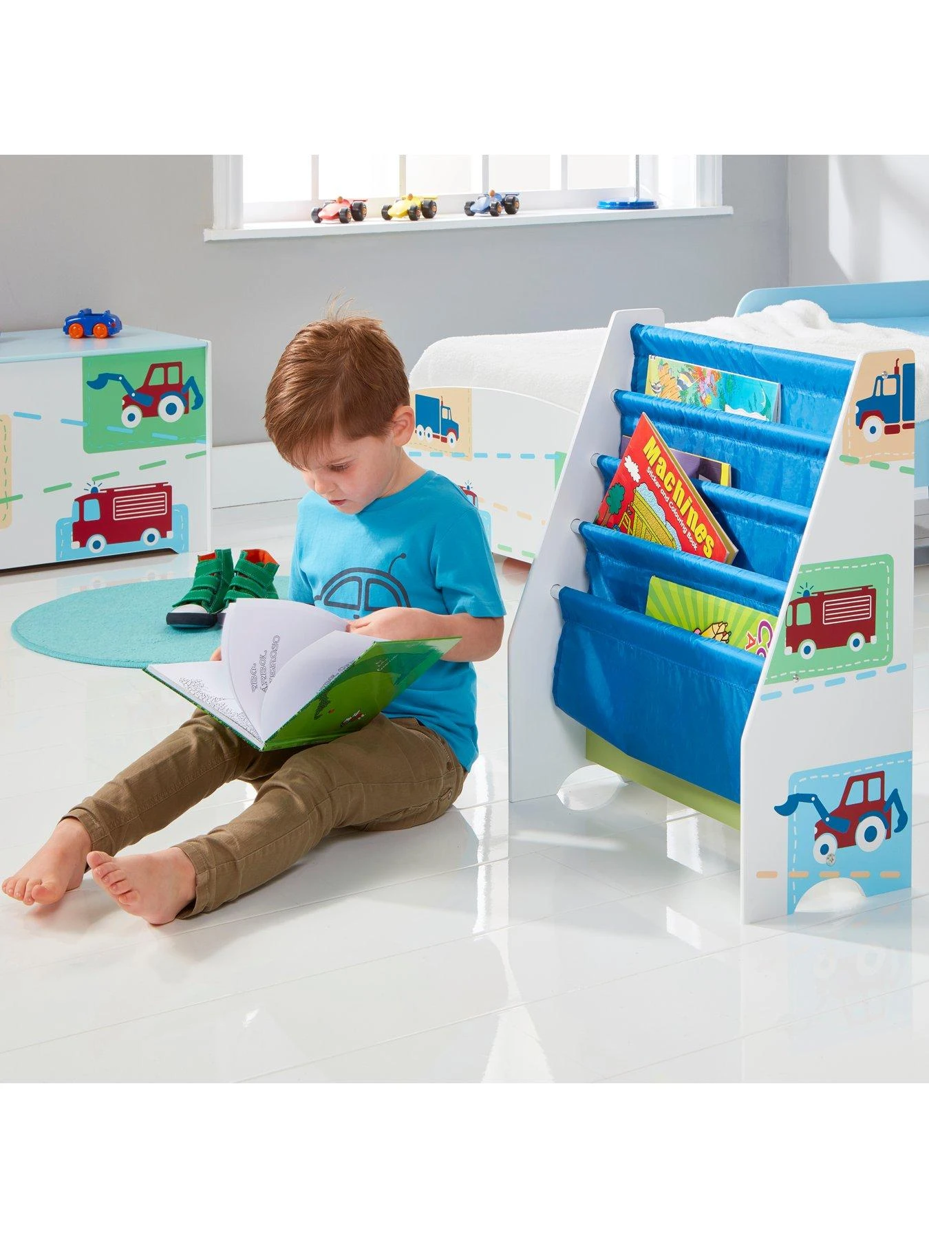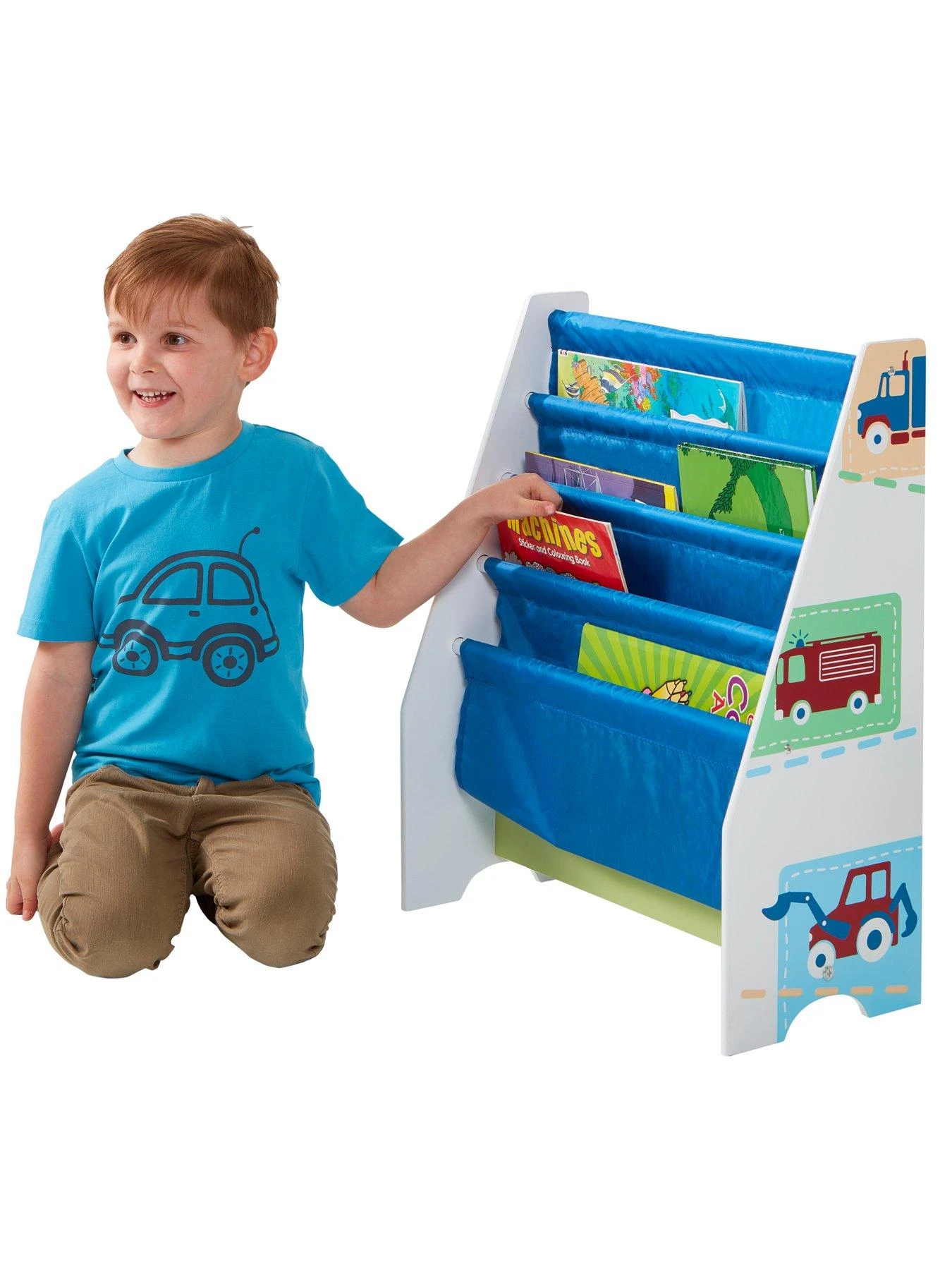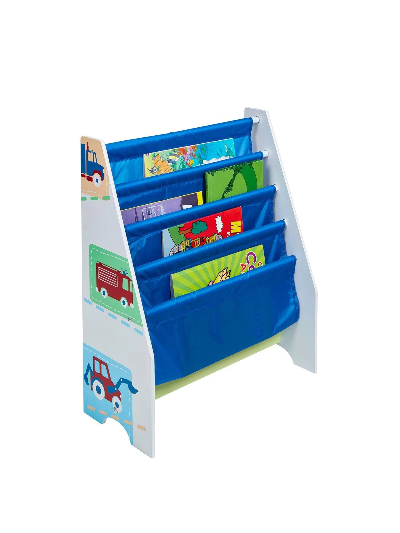 From story time to tidy-up time, add a bit of fun to his room with this Vehicles Sling Bookcase. With a sturdy MDF frame plus 4 fabric sling compartments, this fun bookcase is perfect for tidying away his favourite stories after he’s tucked up in bed.