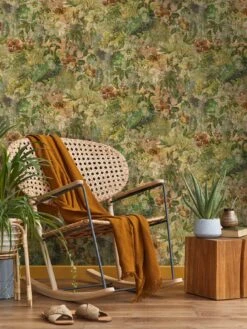 The Vintage Peacock Wallpaper will bring a unique focal point to any room in your home. This exquisite design showcases graceful peacocks and delicate butterflies amidst a weathered tropical pattern crafted with natural paint textures, against a subtly textured matte backdrop. Simple to install, this top-notch wallpaper is perfect for creating a stunning feature wall or seamlessly covering an entire room for a cohesive look.