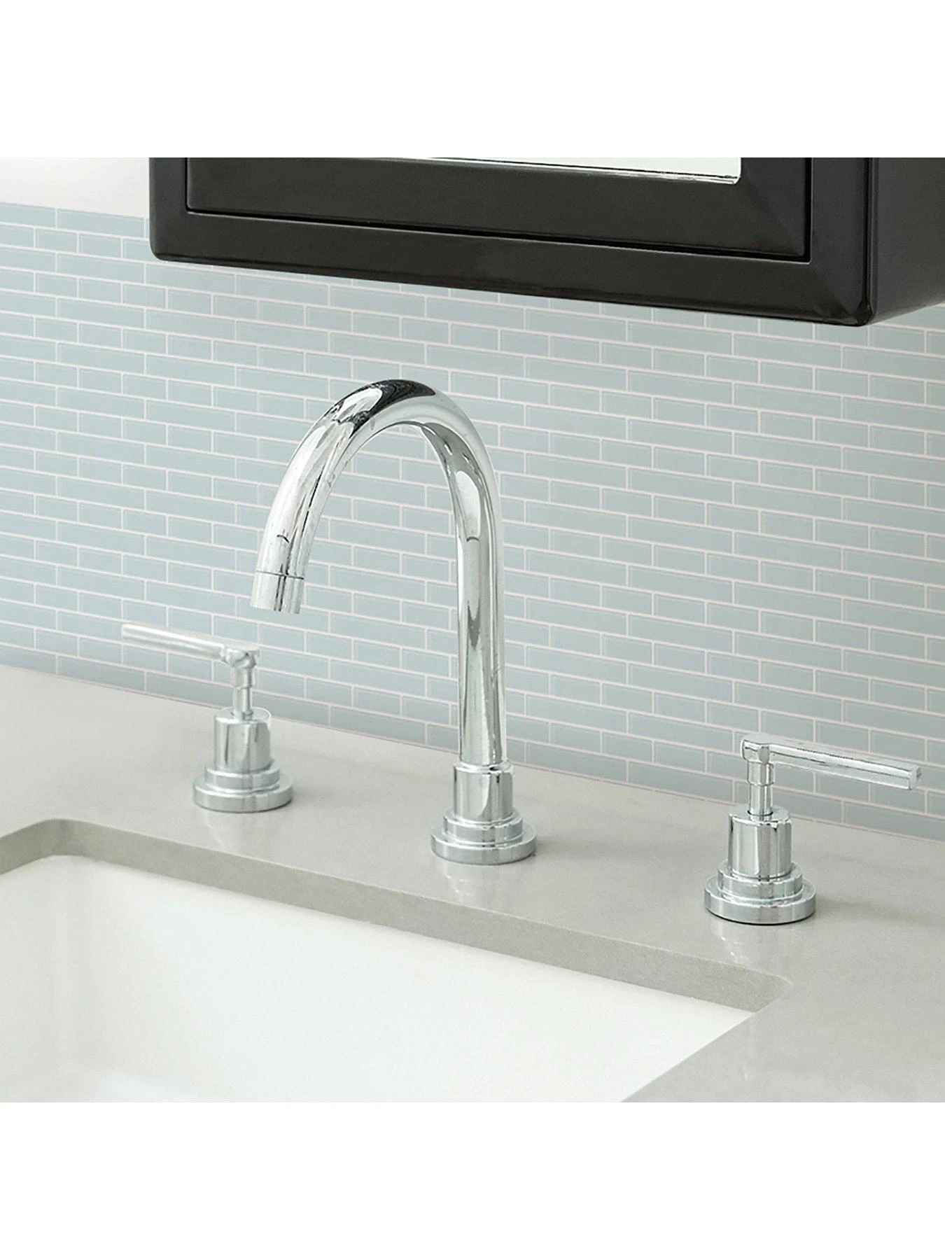 Create a fresh tiled look in your home at a fraction of the cost of the real thing with this pack of 4 Sea Glass peel & stick backsplash tiles.