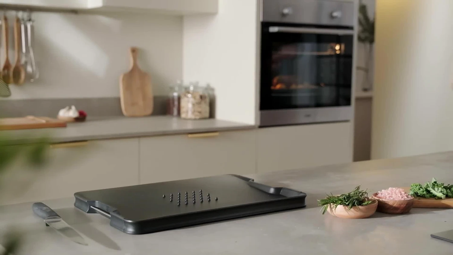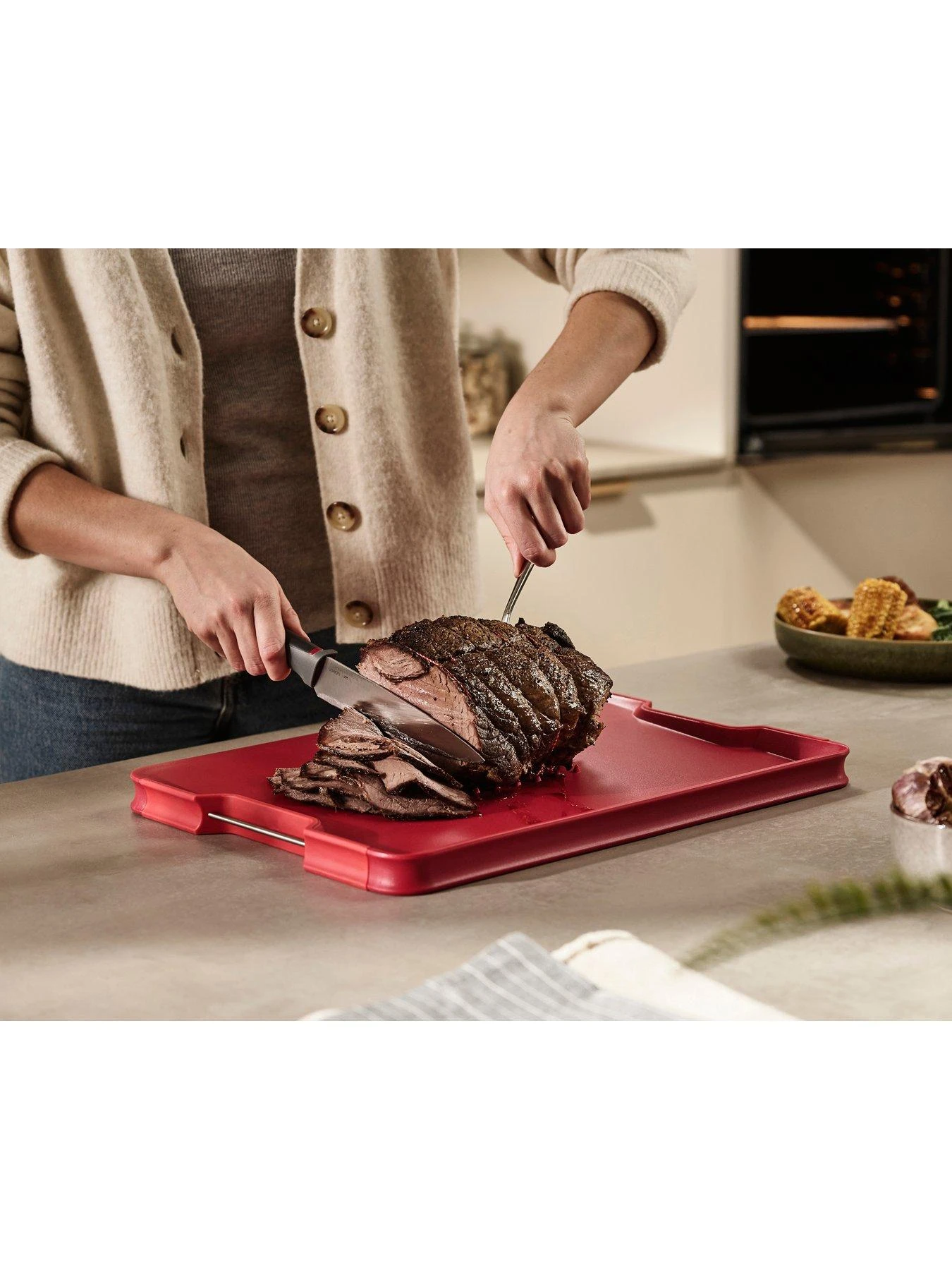 Measuring 41 x 29 cm, it’s made from durable polypropylene and one side has an integrated meat grip that keeps joints of beef or chicken portions in place as you cut them, along with angled surfaces and clever easy-pour corners (so disposing of excess liquids or food is nice and simple). The other surface is completely smooth for general cutting, slicing and food prep.