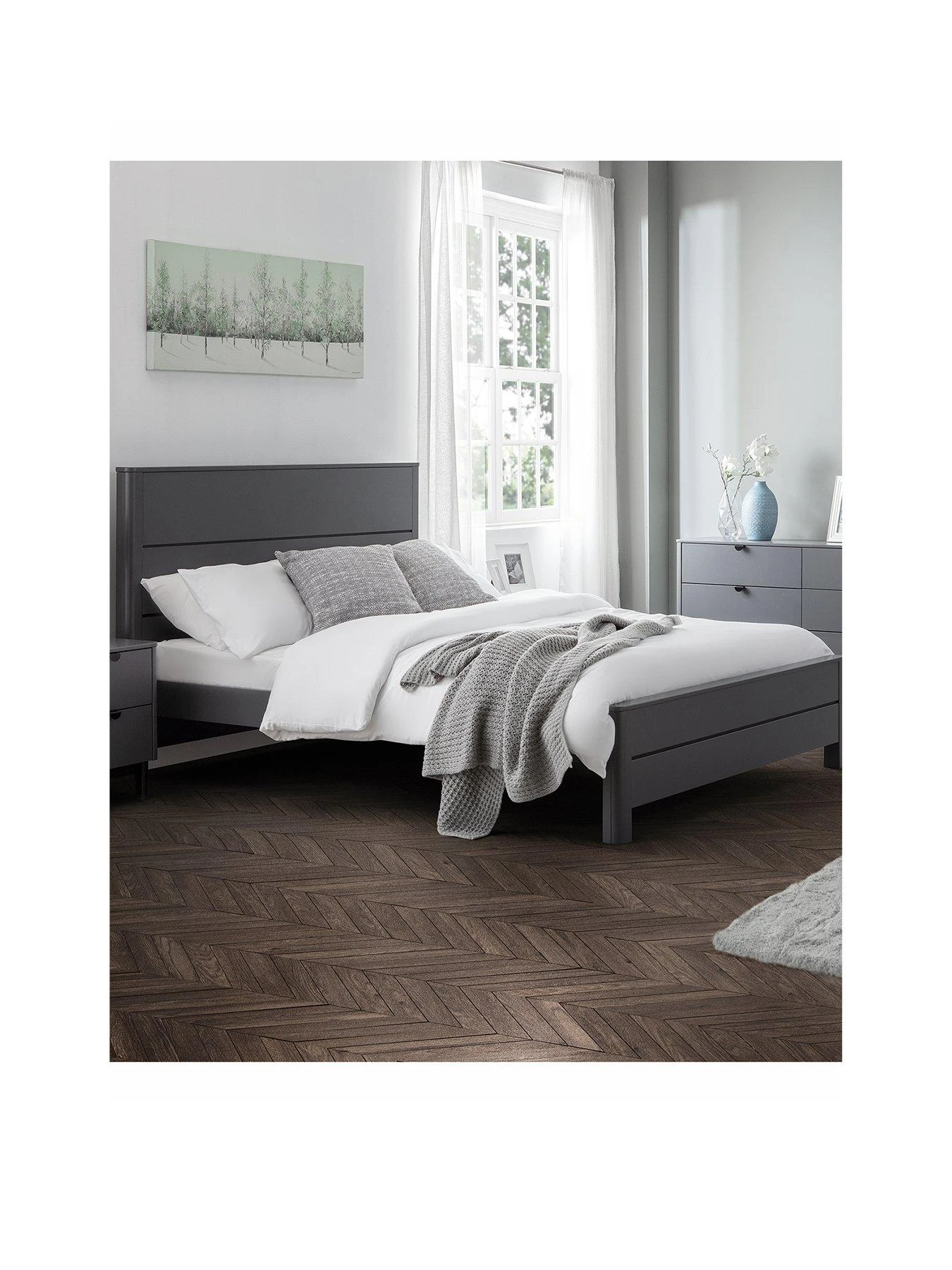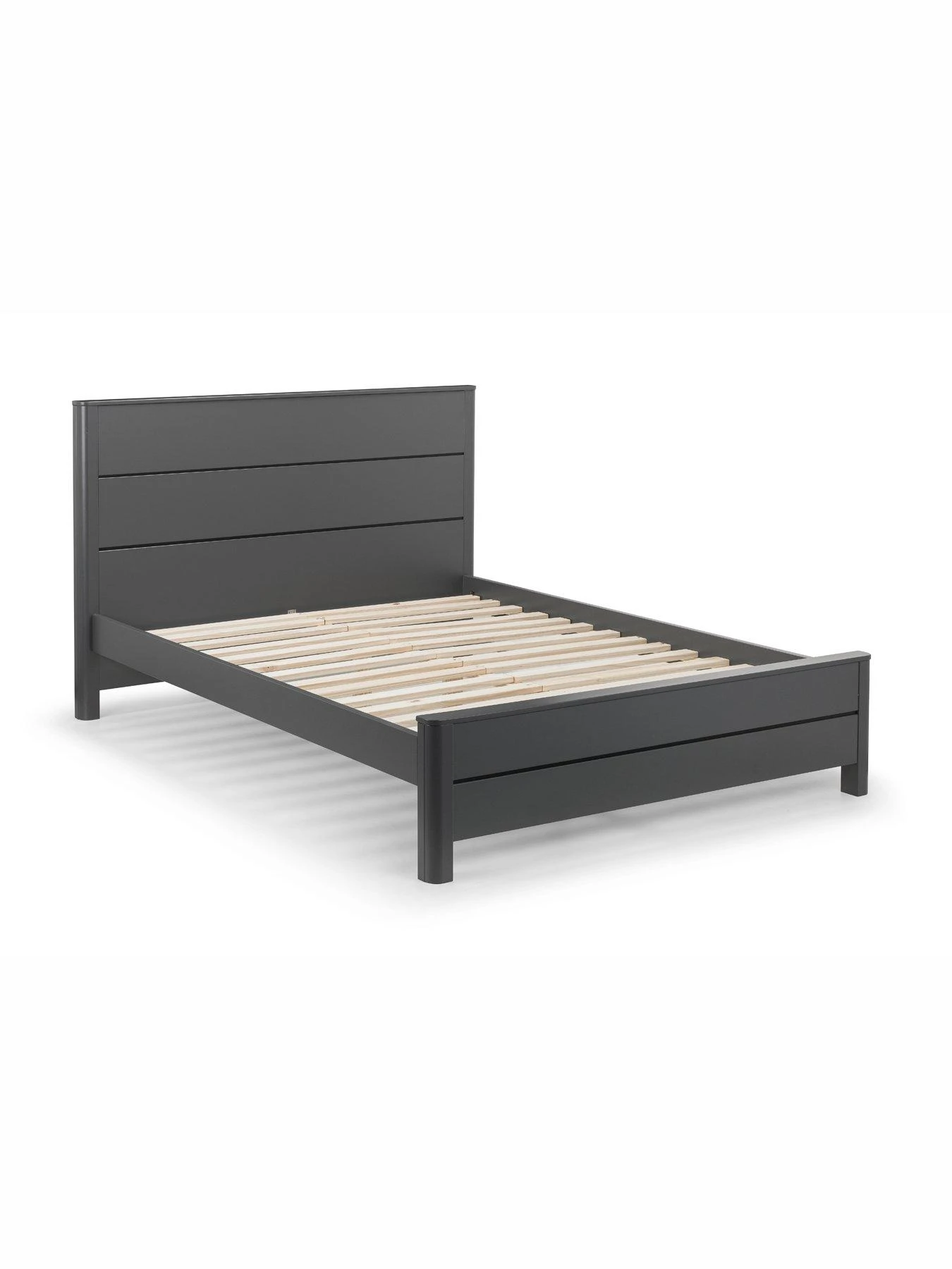 This Chloe bed frame from Julian Bowen combines a retro design with modern styling. Featuring a slatted finish to the foot end and headboard, it’s been given a contemporary storm grey coloured lacquer.