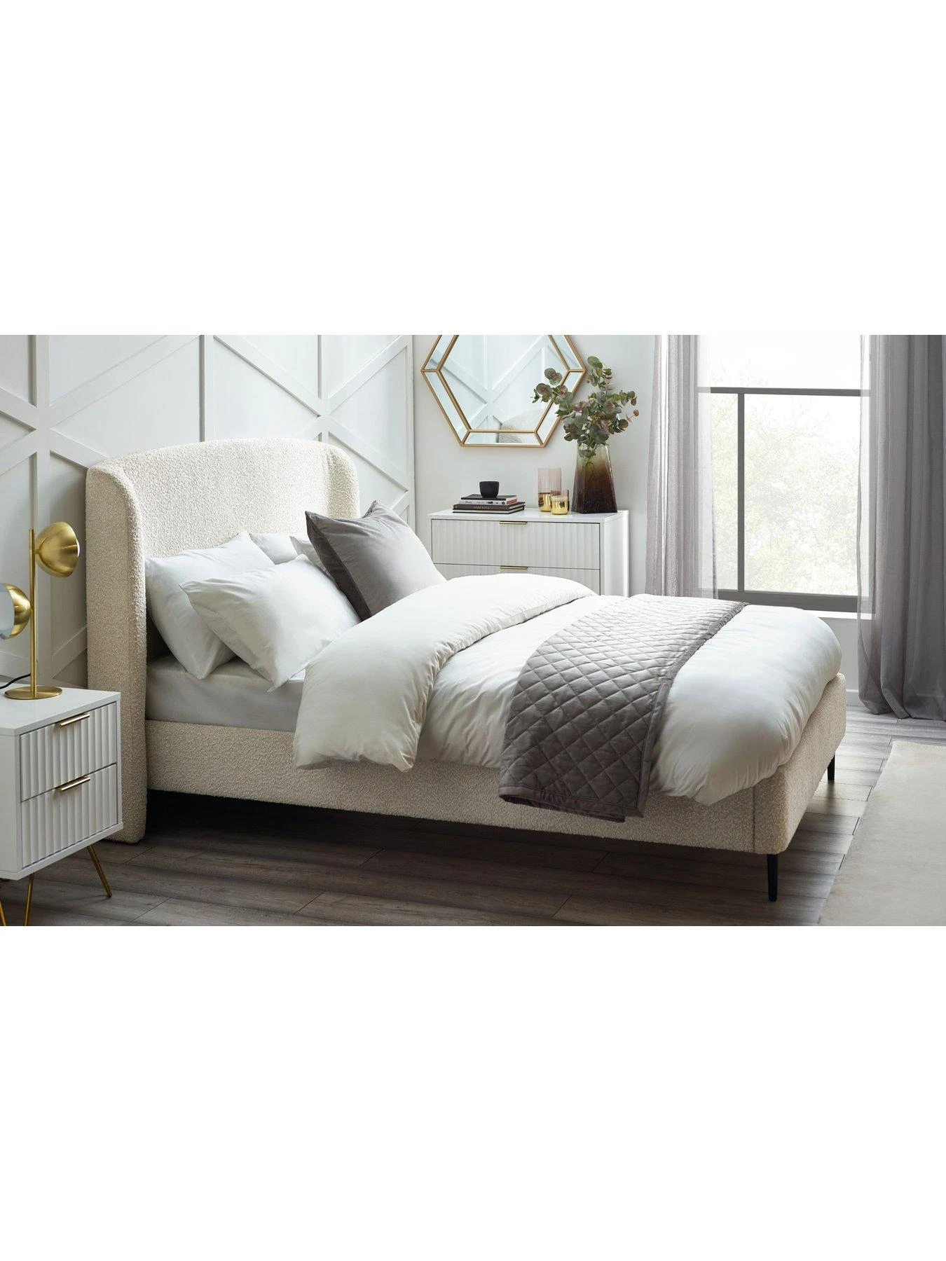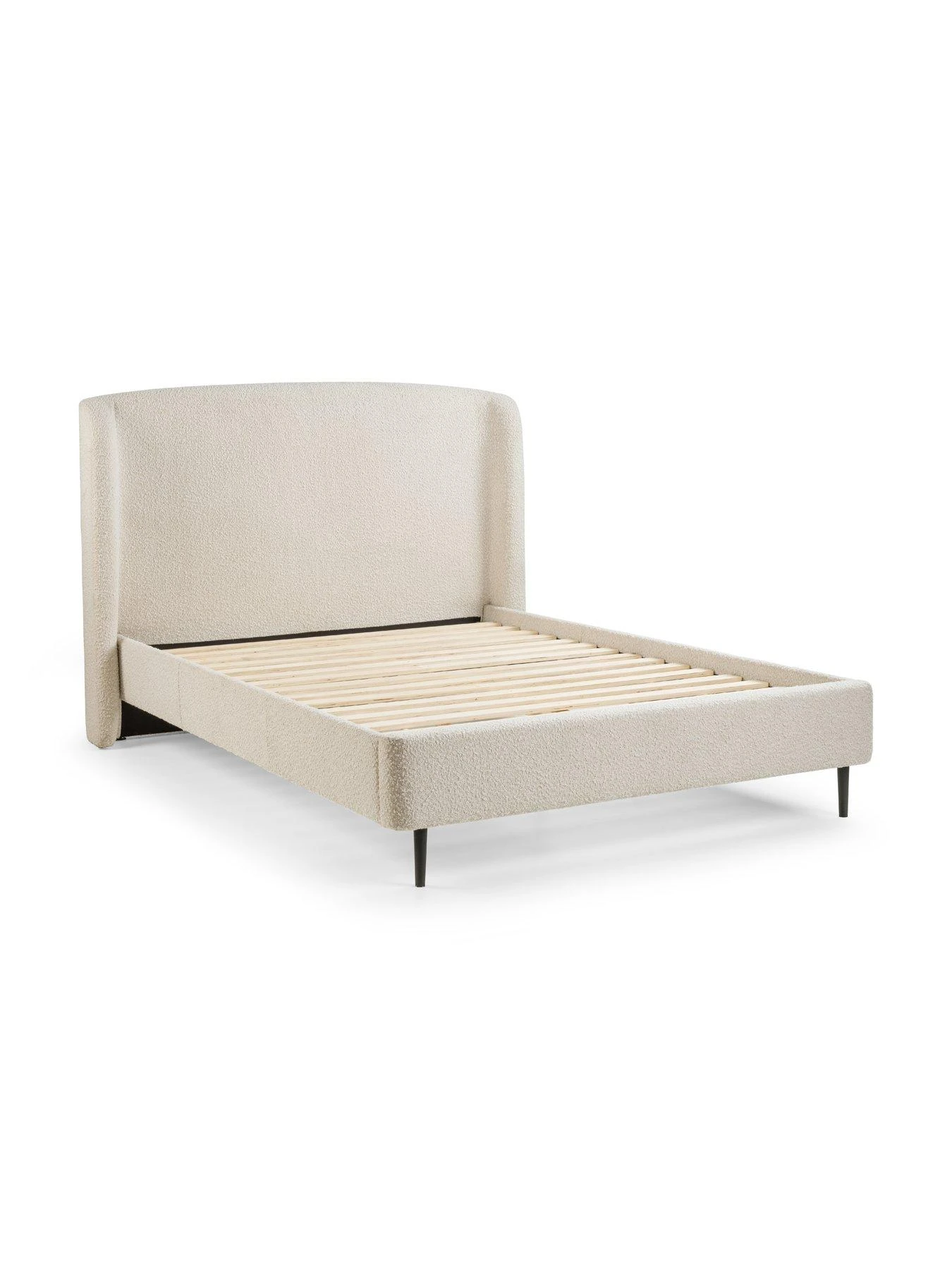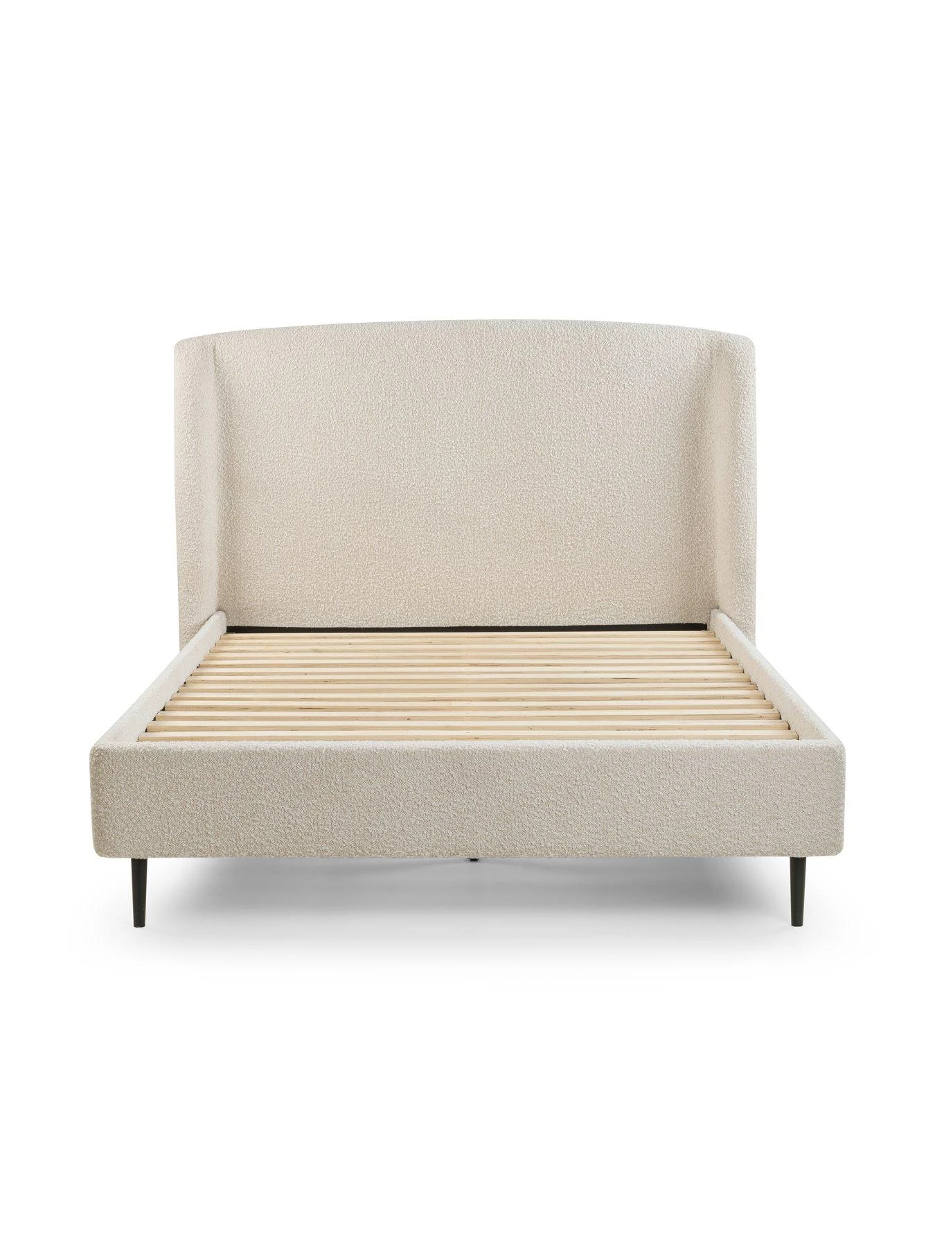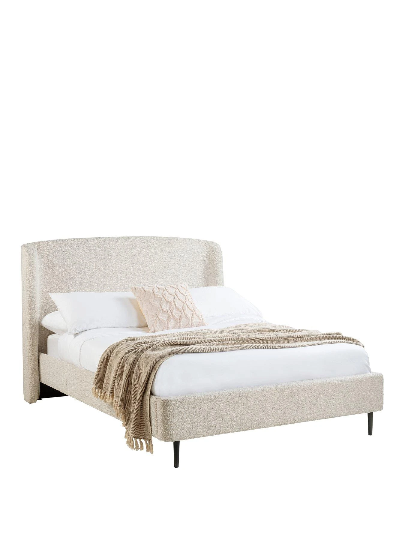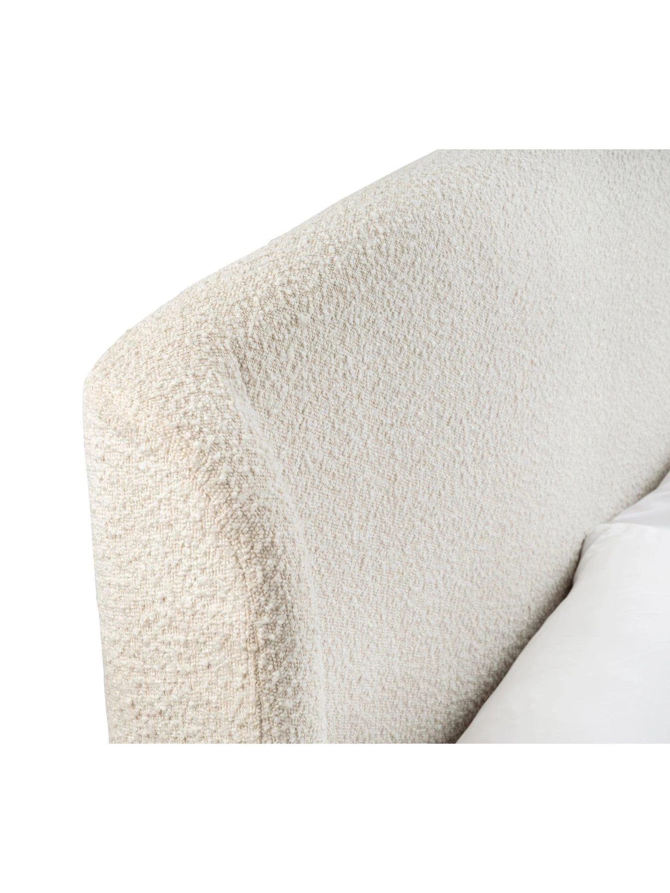 The Eden Boucle Bed excels in class and elegance bringing a sense of style and comfort to any modern bedroom space. Featuring a curved headboard and finished in a stunning ivory boucle with black legs.