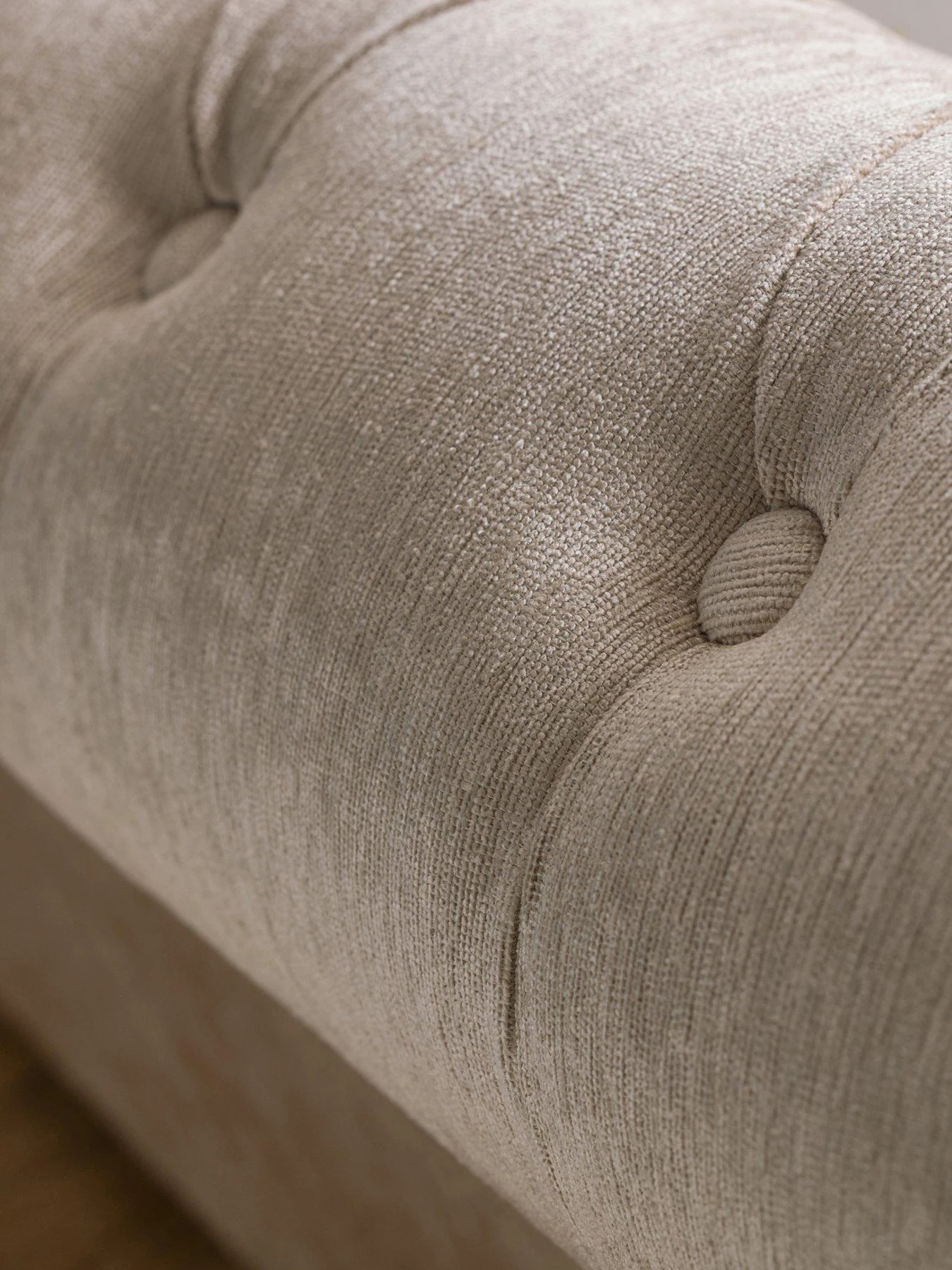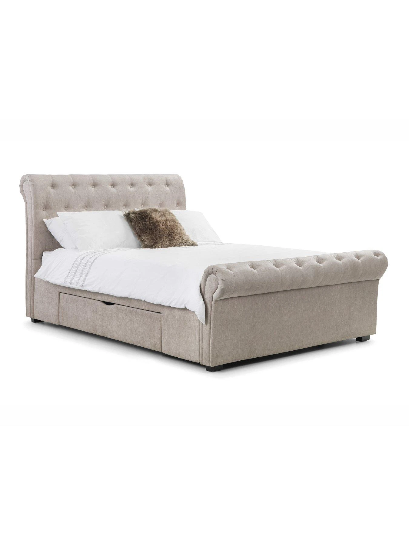 Ravello is a stunning fabric bed with a classic scroll design to the headboard and foot end. Finished in a sumptuously soft touch mink chenille fabric, it flaunts deep button detail and two large under bed drawers for handy storage space.