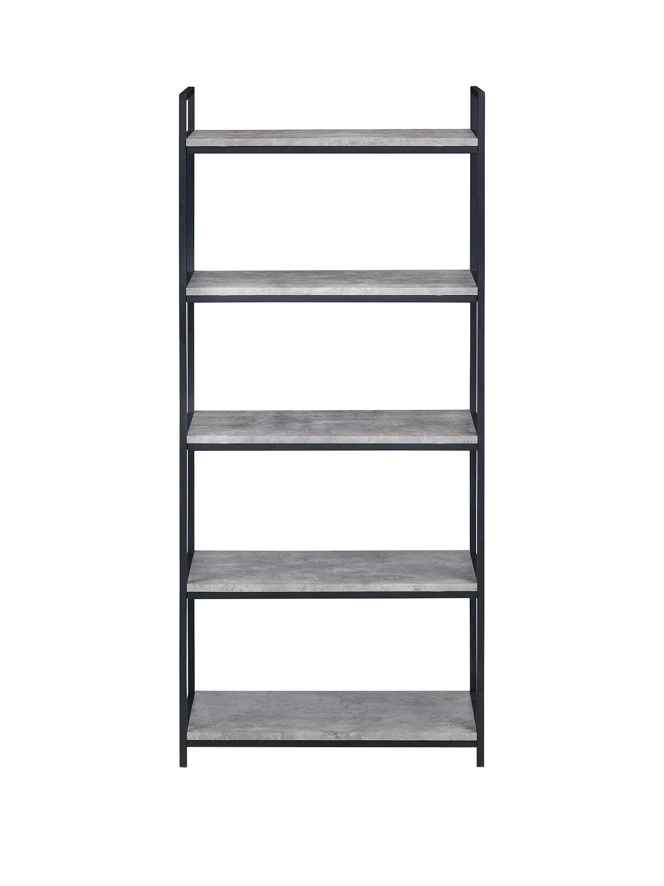 Five shelves flaunt a contemporary concrete effect foil finish, and the industrial look is enhanced by the black coated metal frame.