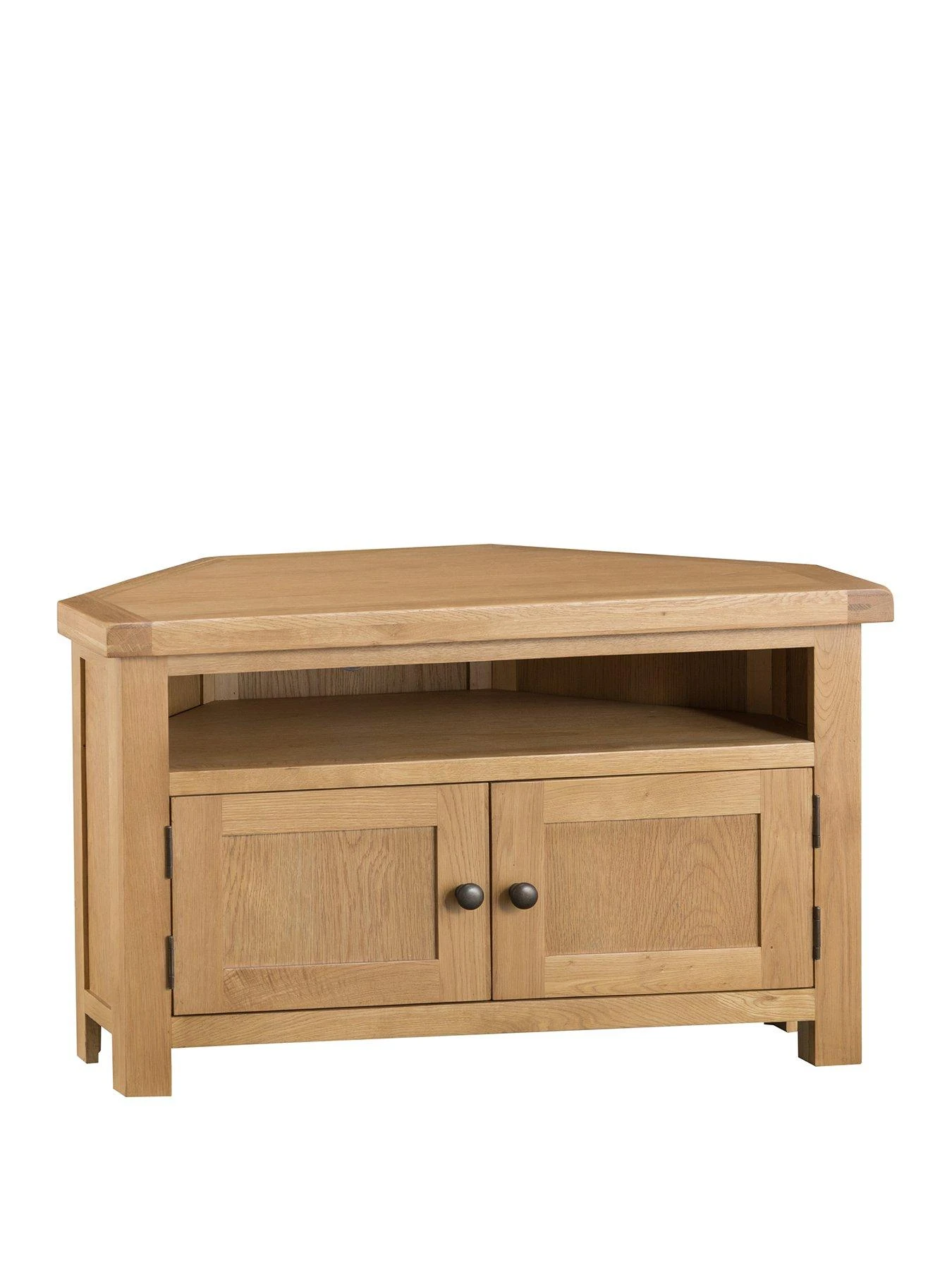 K-Interiors Alana Ready Assembled 2 Door Corner TV Unit in Rustic Oak – suitable for televisions up to 46 inch