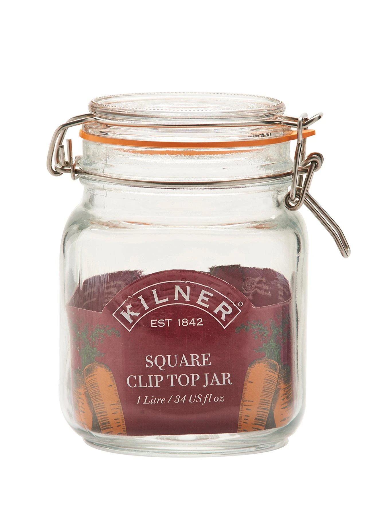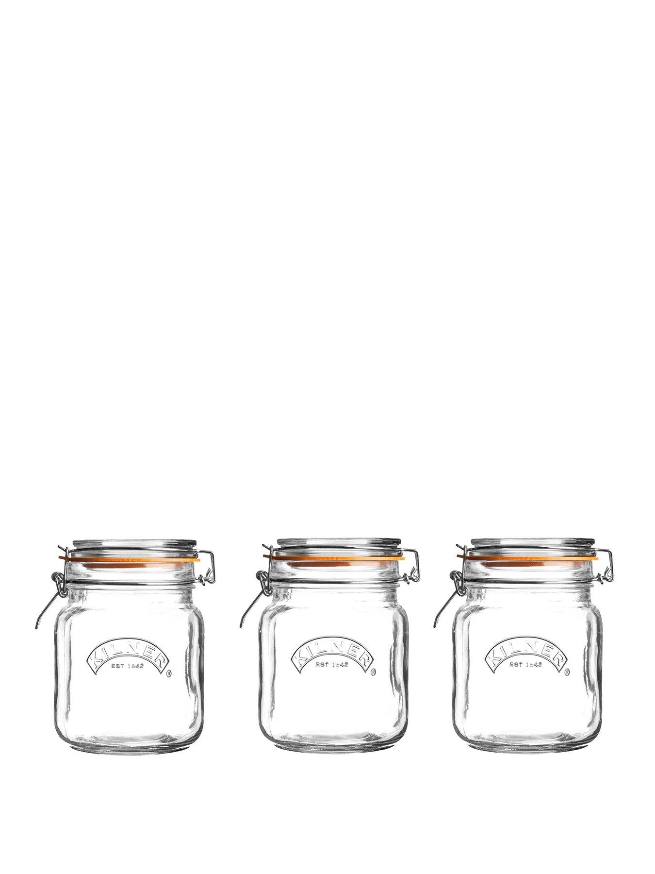 The timeless, squared-off design of each one is enhanced by an embossed Kilner logo to the front, and the combination of an orange rubber seal and tight, clip-tip lid ensures food stays fresher for longer. All three jars have a one-litre capacity, so there’s even plenty of space for preserving fruit.