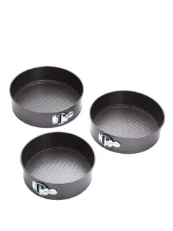 Perfect for baking sponges, fruit or cheesecakes, this set of three non-stick cake tins all have a loose base for easy removal.