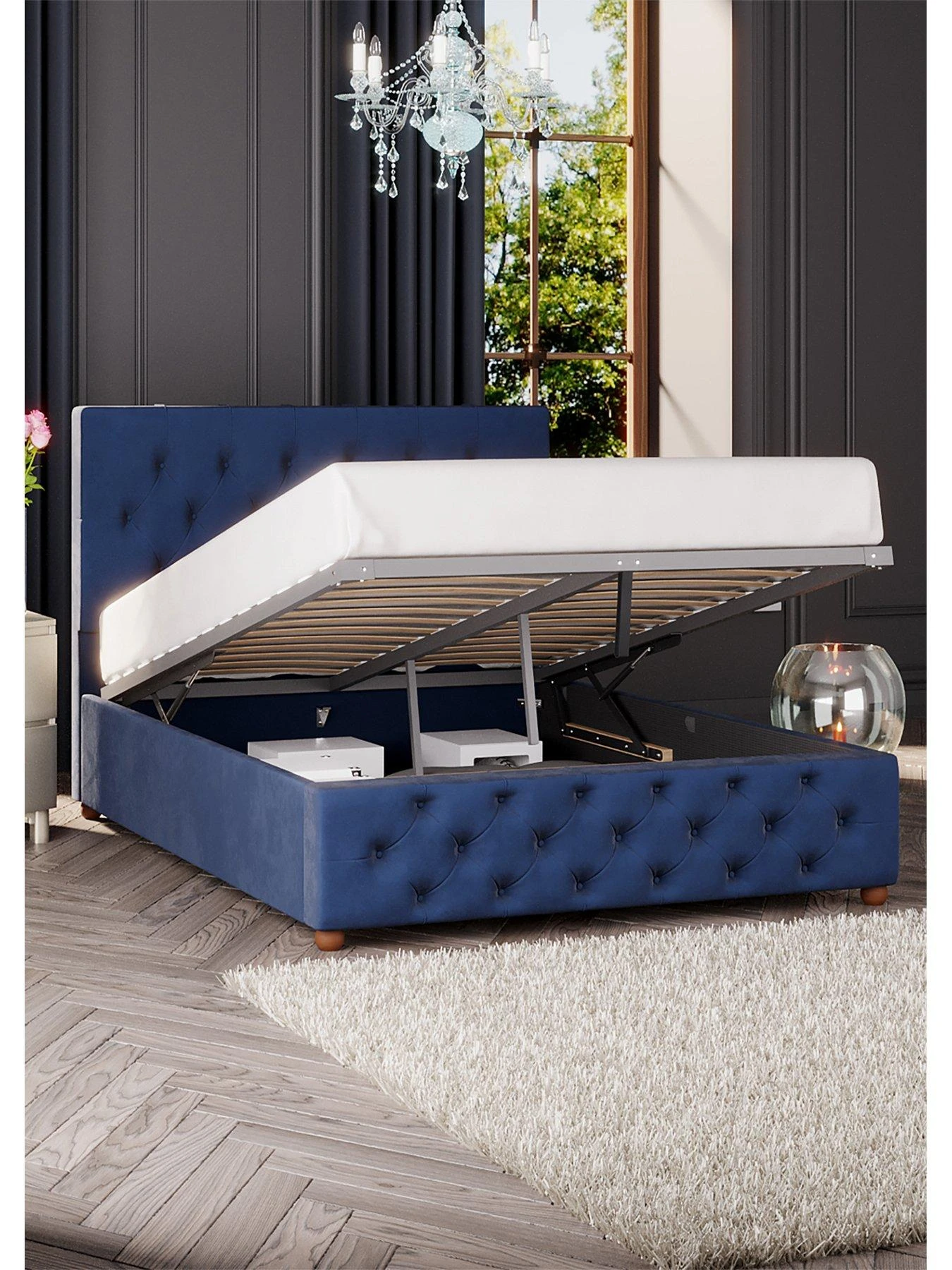 Laurence Llewelyn-Bowen Luna Ottoman Double Bed in Berry, Blush, Navy, Ochre or Emmerald