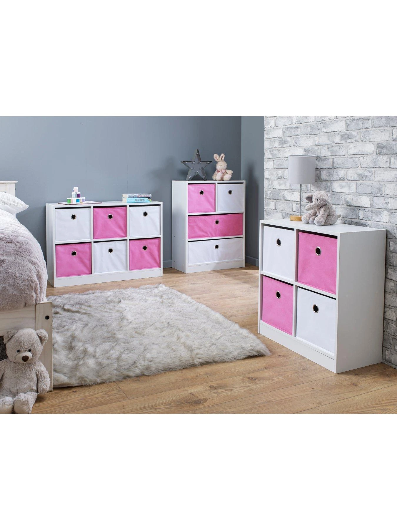 These 6 cube storage solutions are a great way to add a splash of colour to any bedroom whilst also storing away your childrens treasures and trinkets. They come available in Pink, Blue, White and a Star and Heart print which can compliment any d????cor and can also match other styles within the Lloyd Pascal childrens range. The Great thing about these cubes are they can also double up as shelves if you remove the boxes and can be moved around the house as a great storage solution.